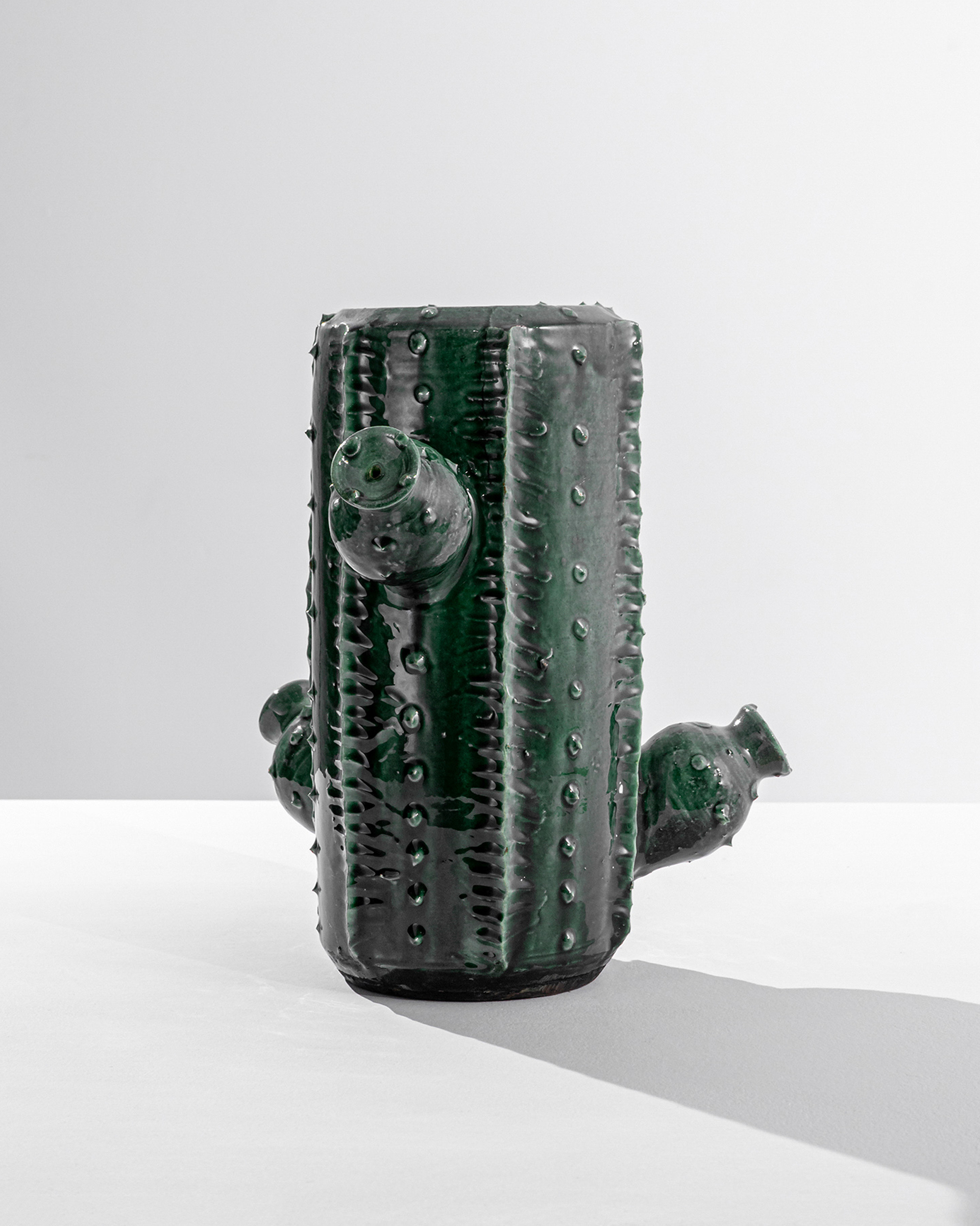 Ceramic Tall Cylinder Green Vase