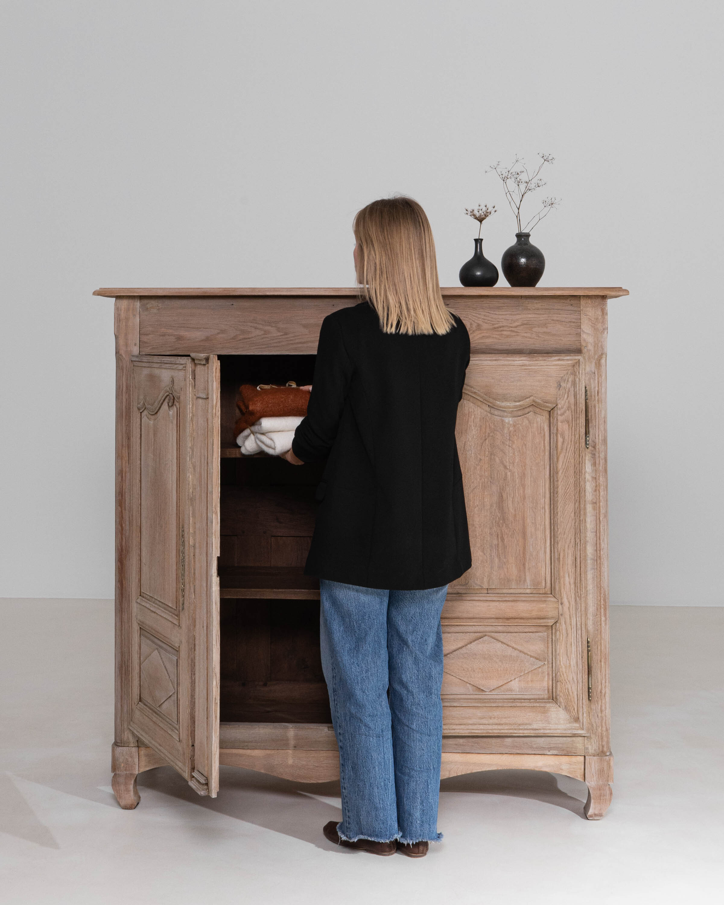 More info About Oak Buffet With Carved Panel Doors And Iron Hardware