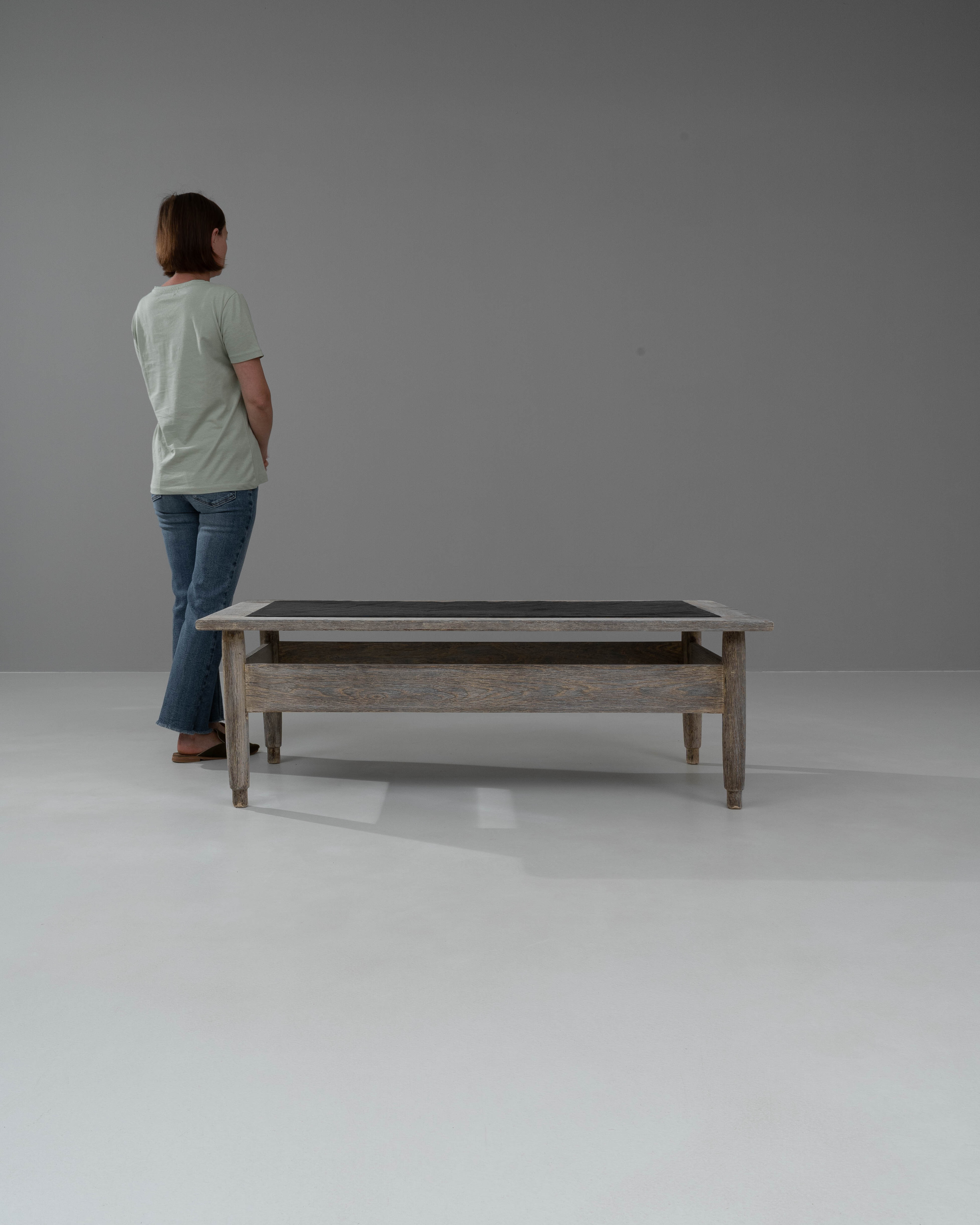 Bleached Oak Coffee Table With Stone Top