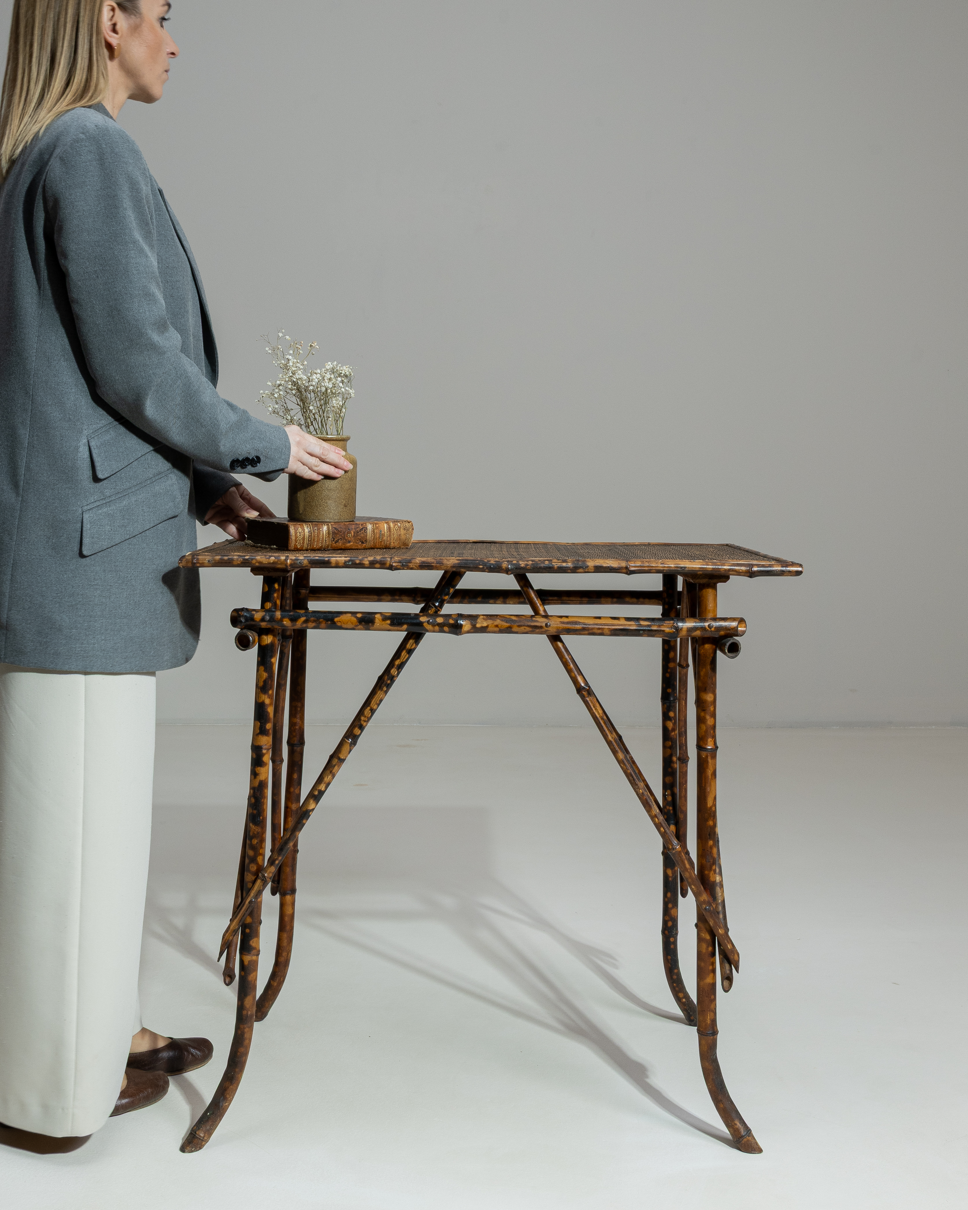 Faux Bamboo Table With Marble Top