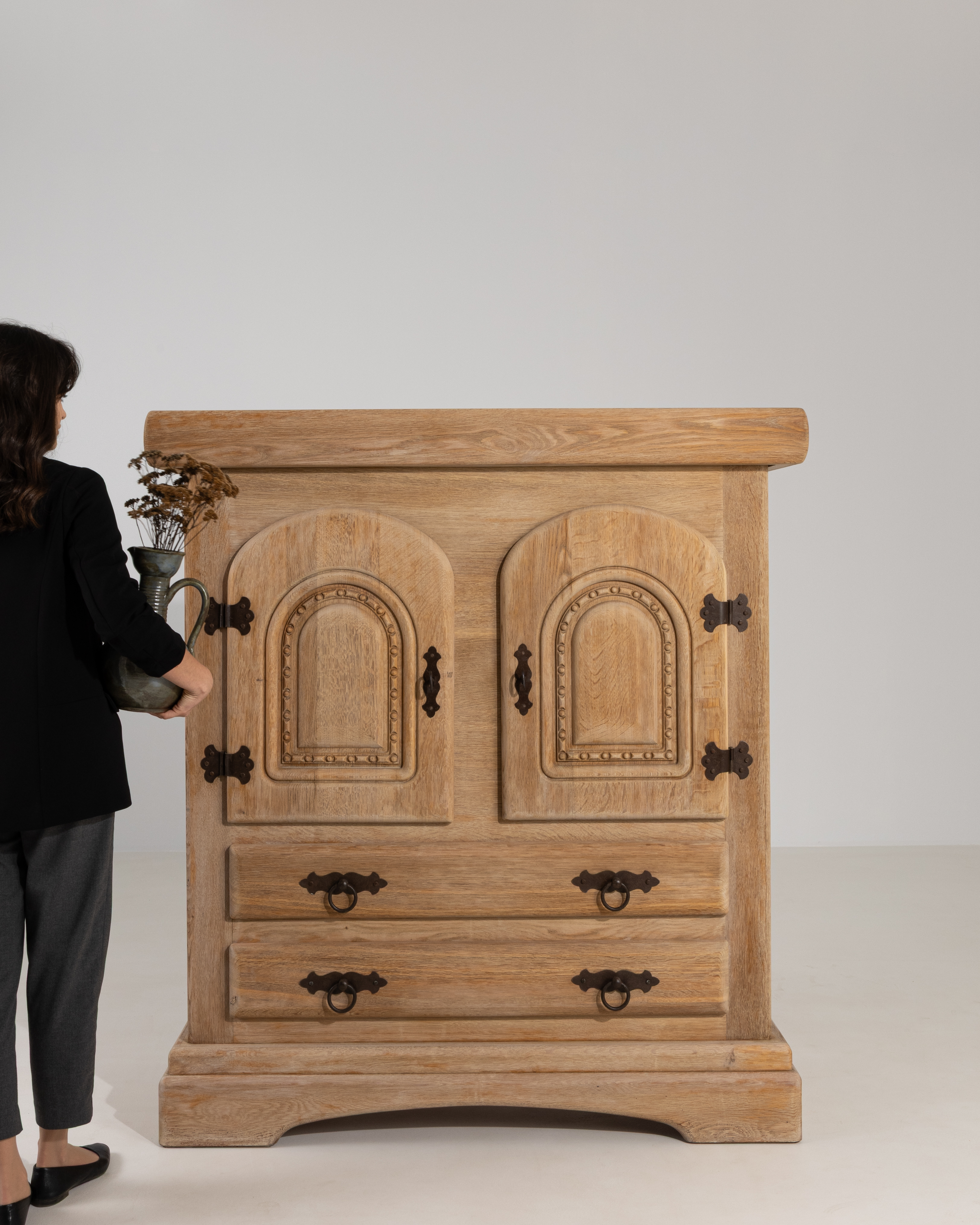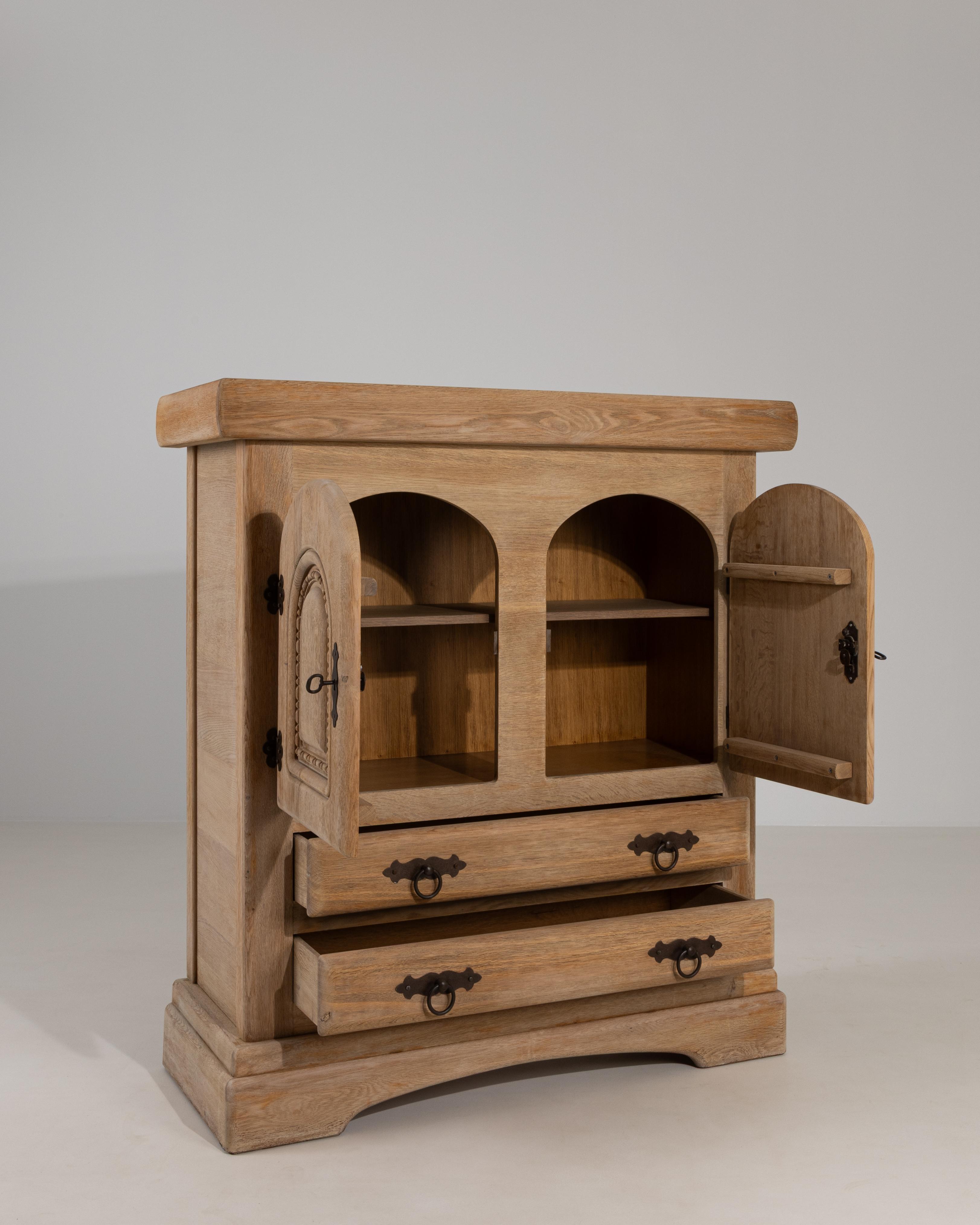 Renaissance Revival Oak Cupboard With Carved Columns