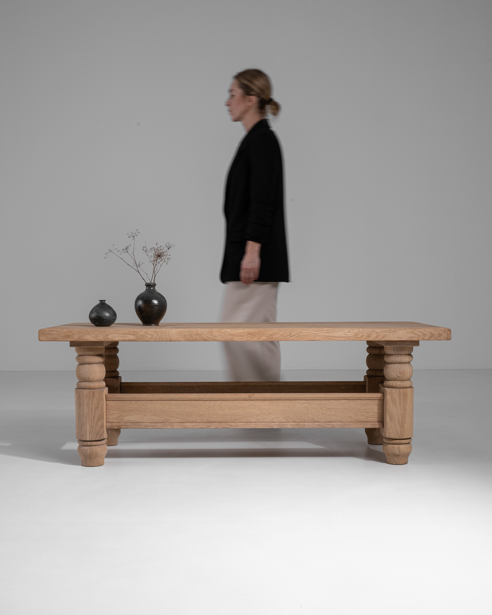 Bleached Oak Coffee Table With Slate Stone Top