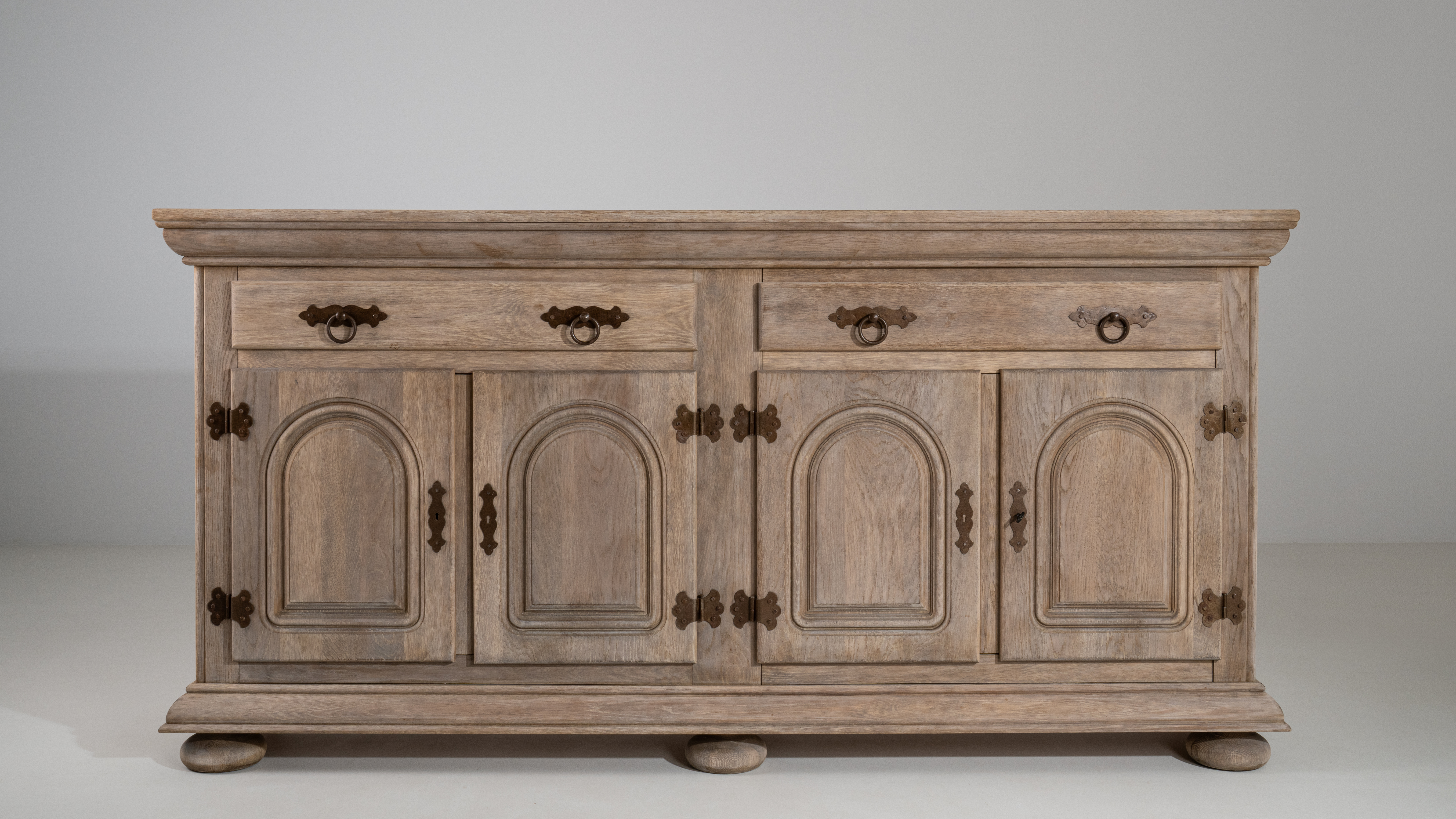Brutalist Oak Buffet With Iron Hardware