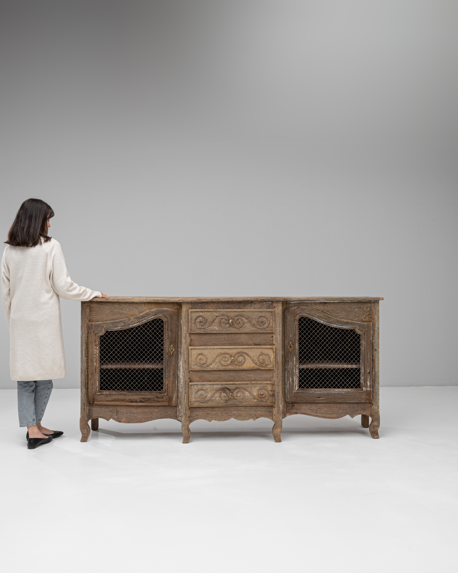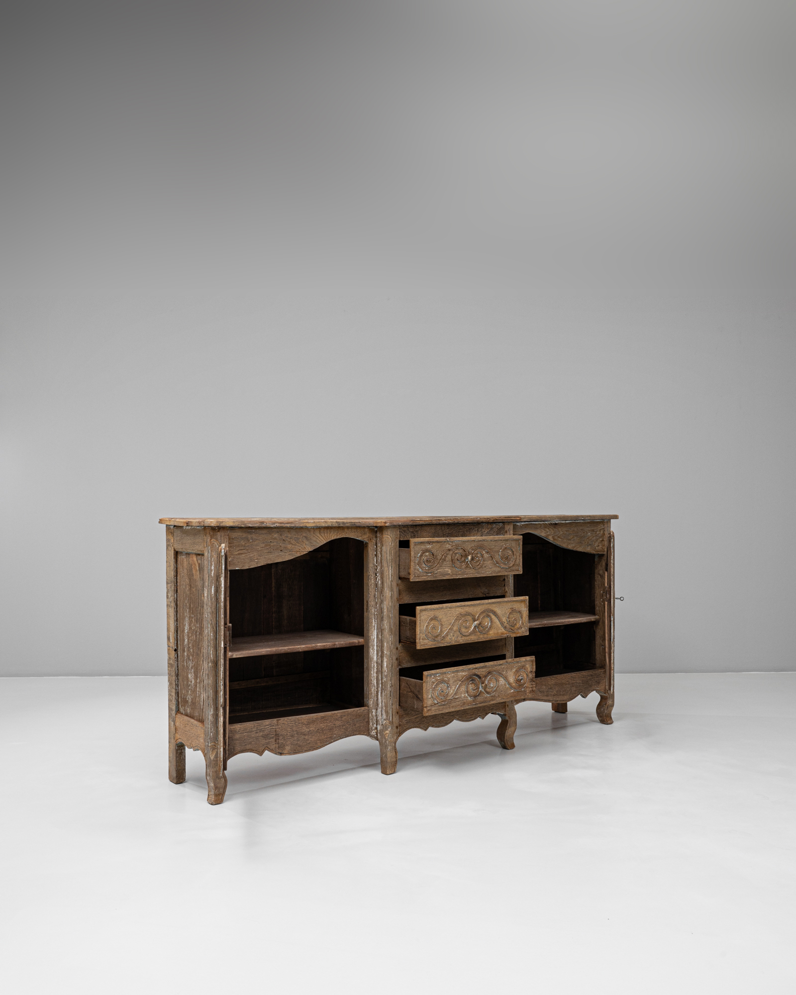 Oak 4-door Buffet With Carved Panel Doors And Iron Hardware