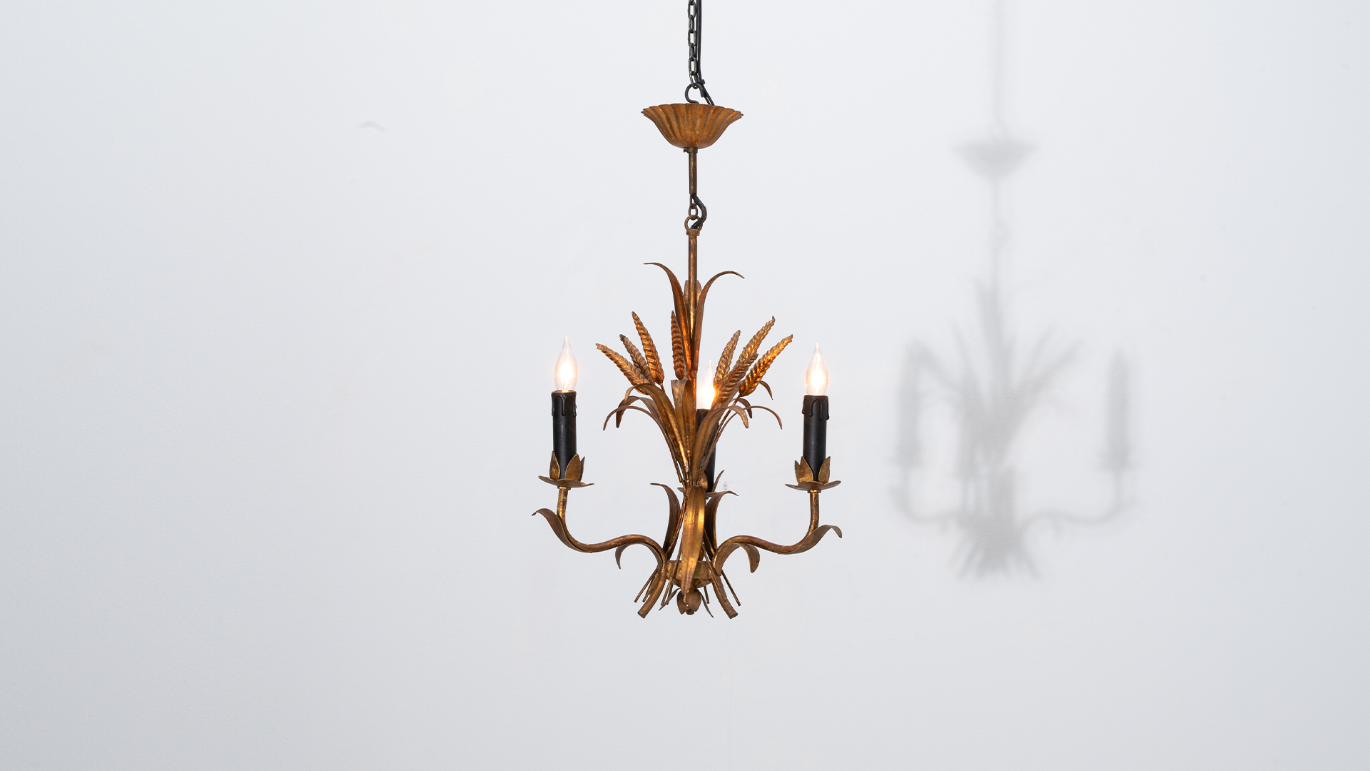 Gilded Florentine Tole Wheat Sheaf Chandelier by Hans Kogl