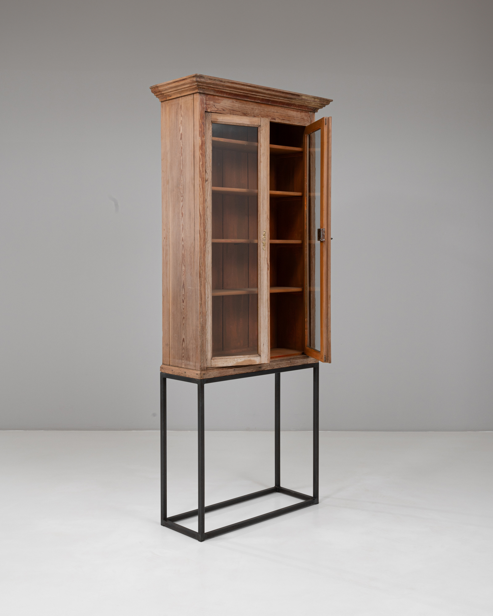 Louis XV Oak Vitrine With Blue Patinated Interior
