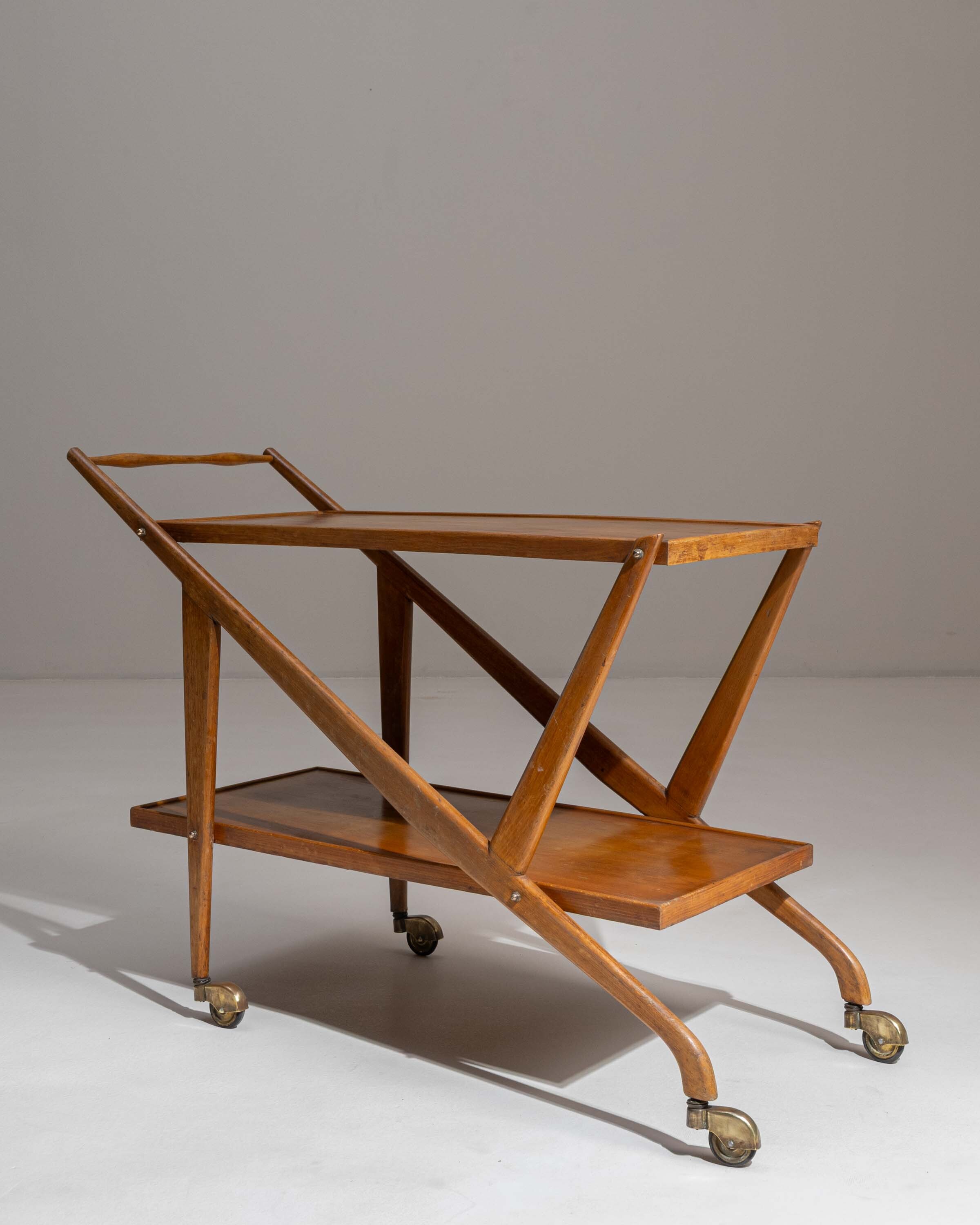 Mid-Century Modern Teak Bar Cart On Wheels