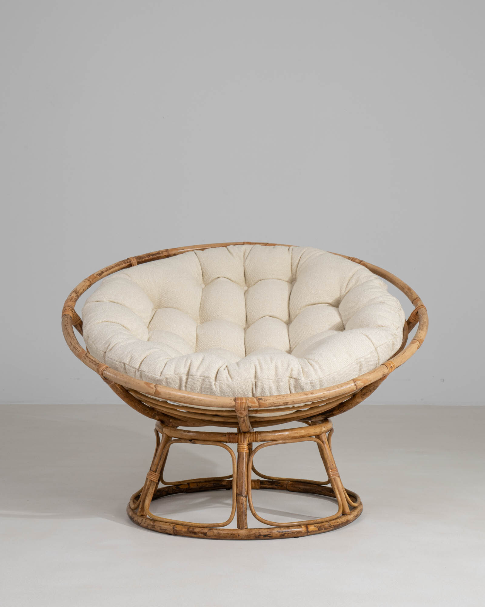 Bamboo Papasan Chair With Bouclé Cushion