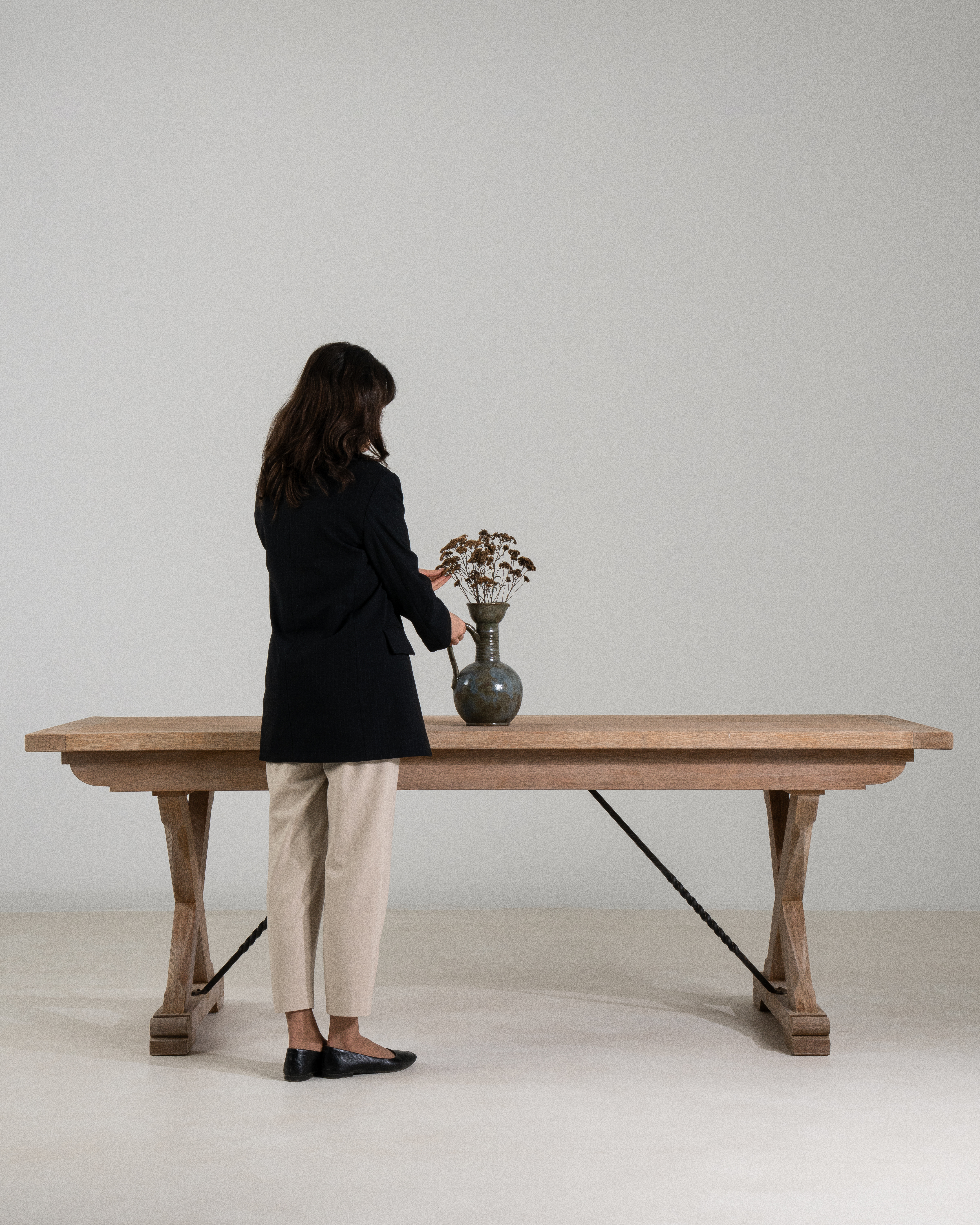 Pinewood Trestle Table with Angular Stretcher Base