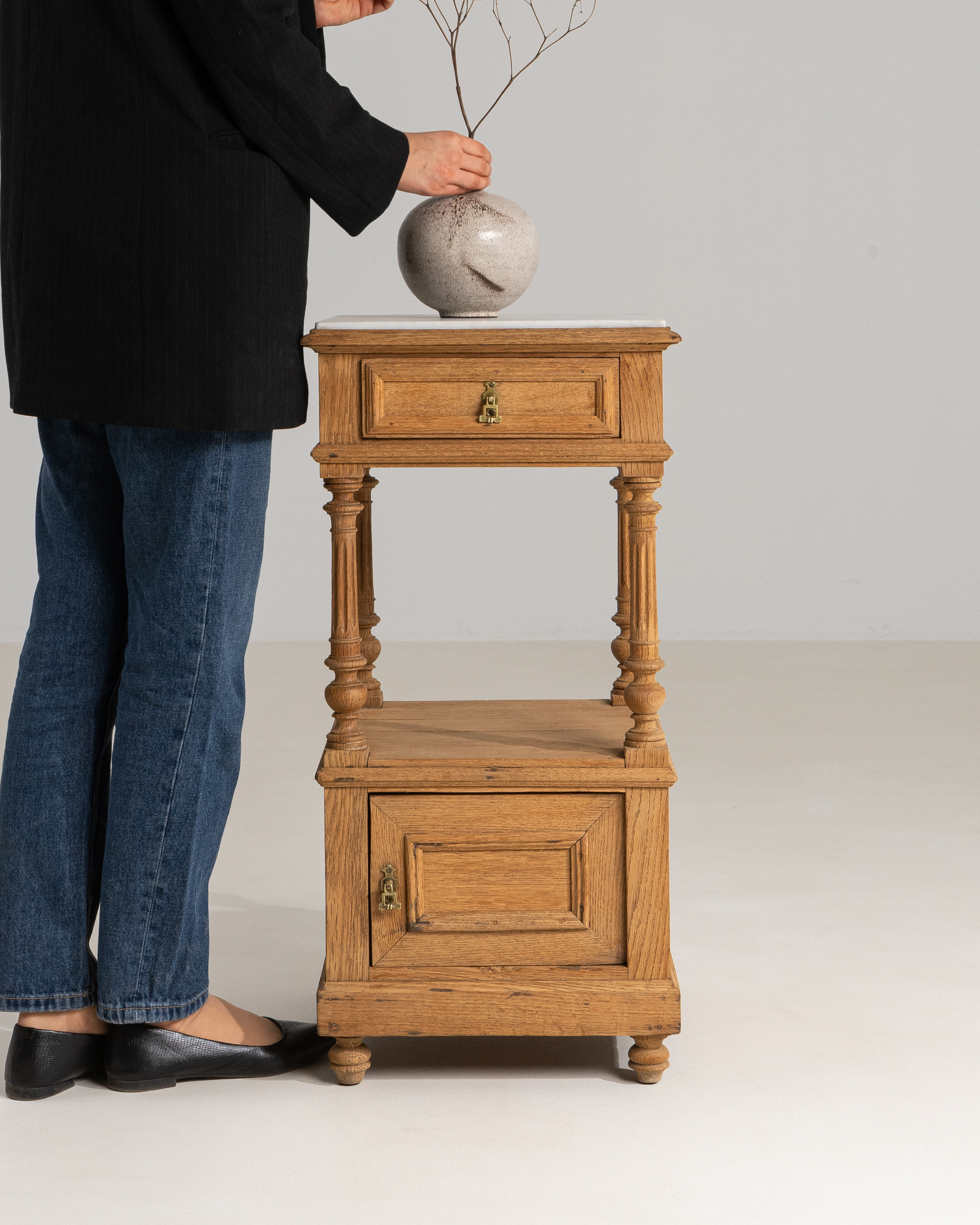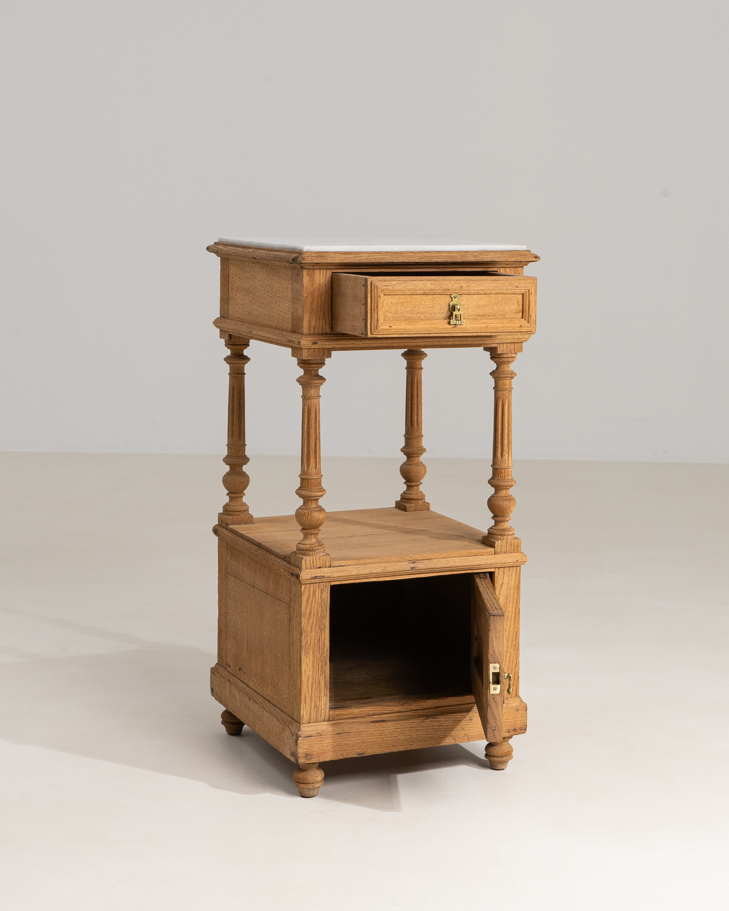 Oak Bedside Table With Marble Top