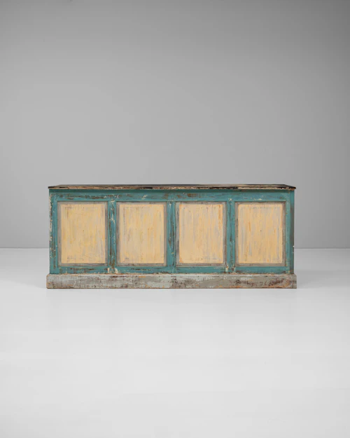 Wood Cabinet in Turquoise & Ochre with Original Patina