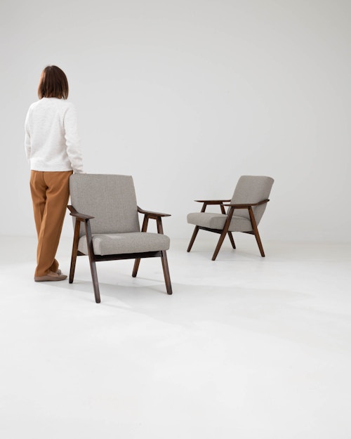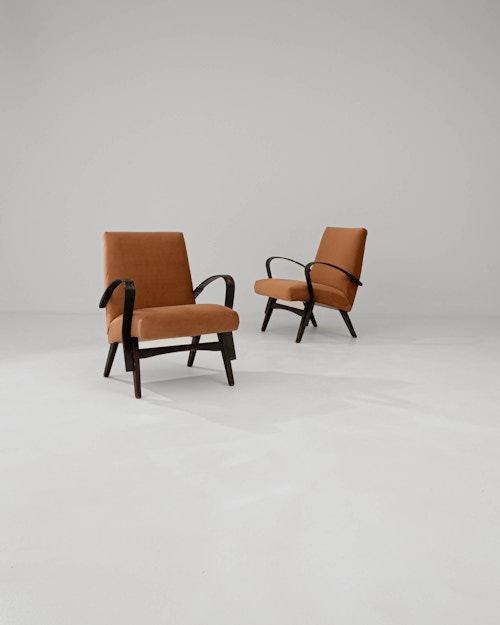 Pair Of MCM Upholstered Armchairs By J. Halabala