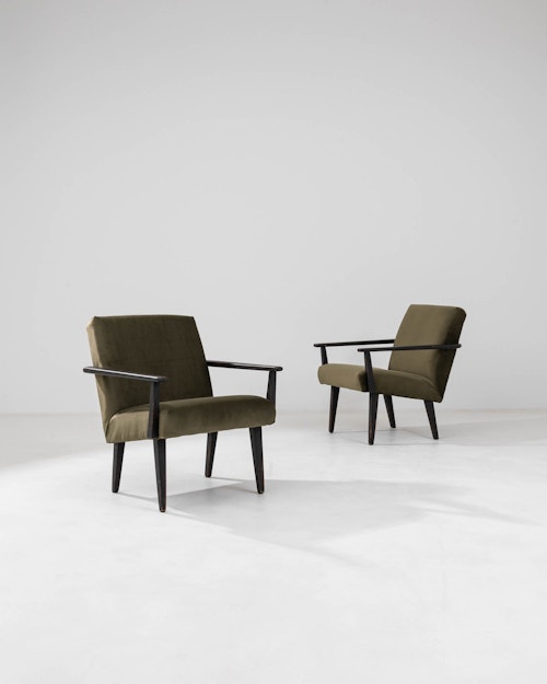 Pair of Green Art Deco Upholstered Armchairs