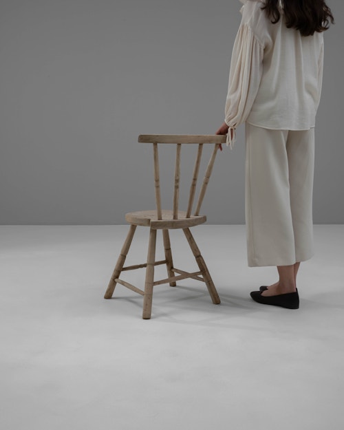 Spindle-Back Oak Armchair with Bouclé Cushions
