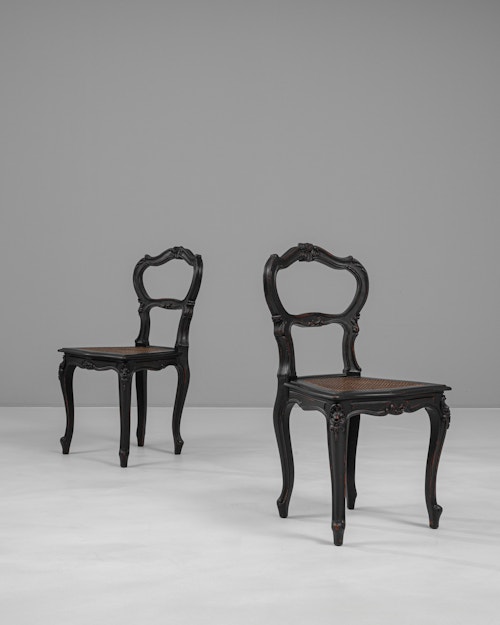 Pair of Baroque Wooden Armchairs With Upholstered Seats