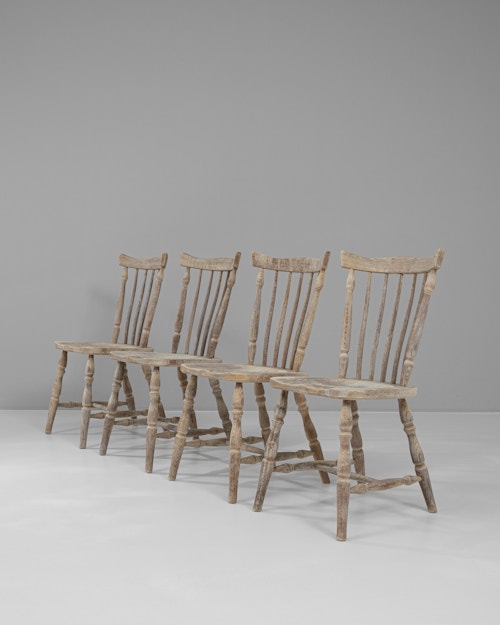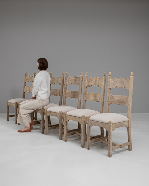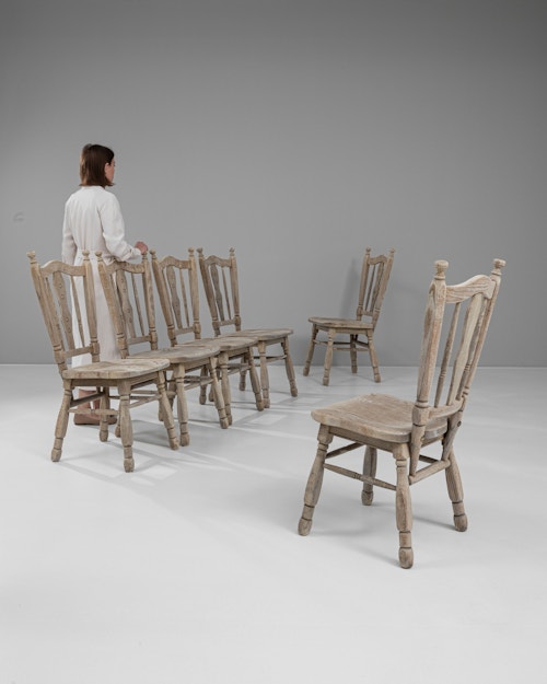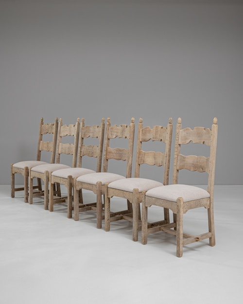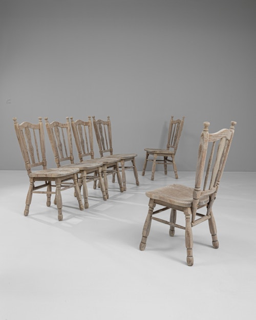 Set of Six Brutalist Oak Dining Chairs In Original Patina