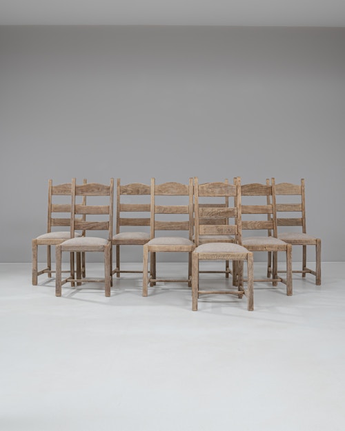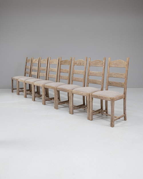 Set Of Bleached Oak Upholstered Dining Chairs