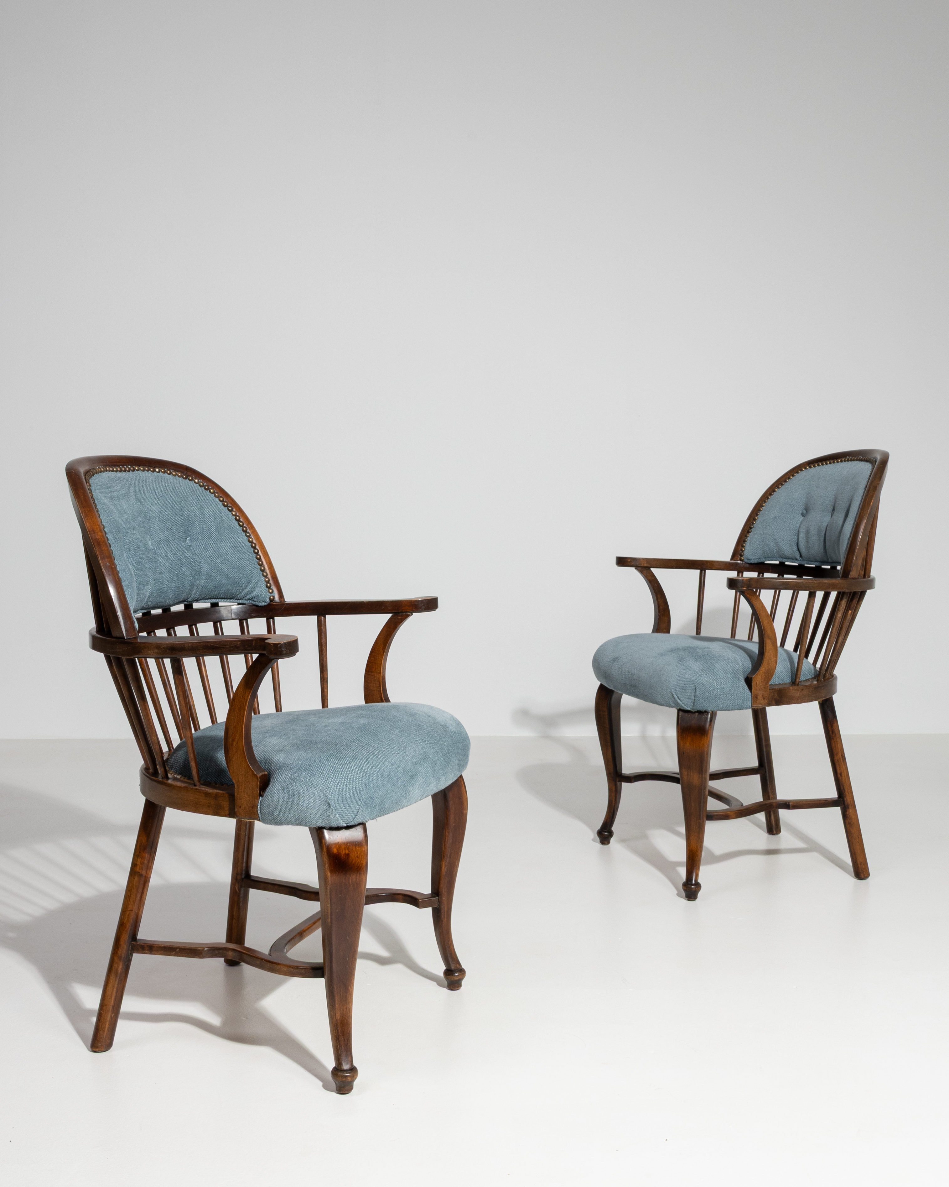 Pair of Art Deco Upholstered Armchairs With Round Pillows