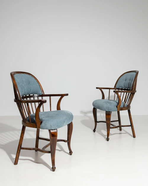 More info About Pair Of Oak Armchairs With Upholstered Seats And Backs![]()