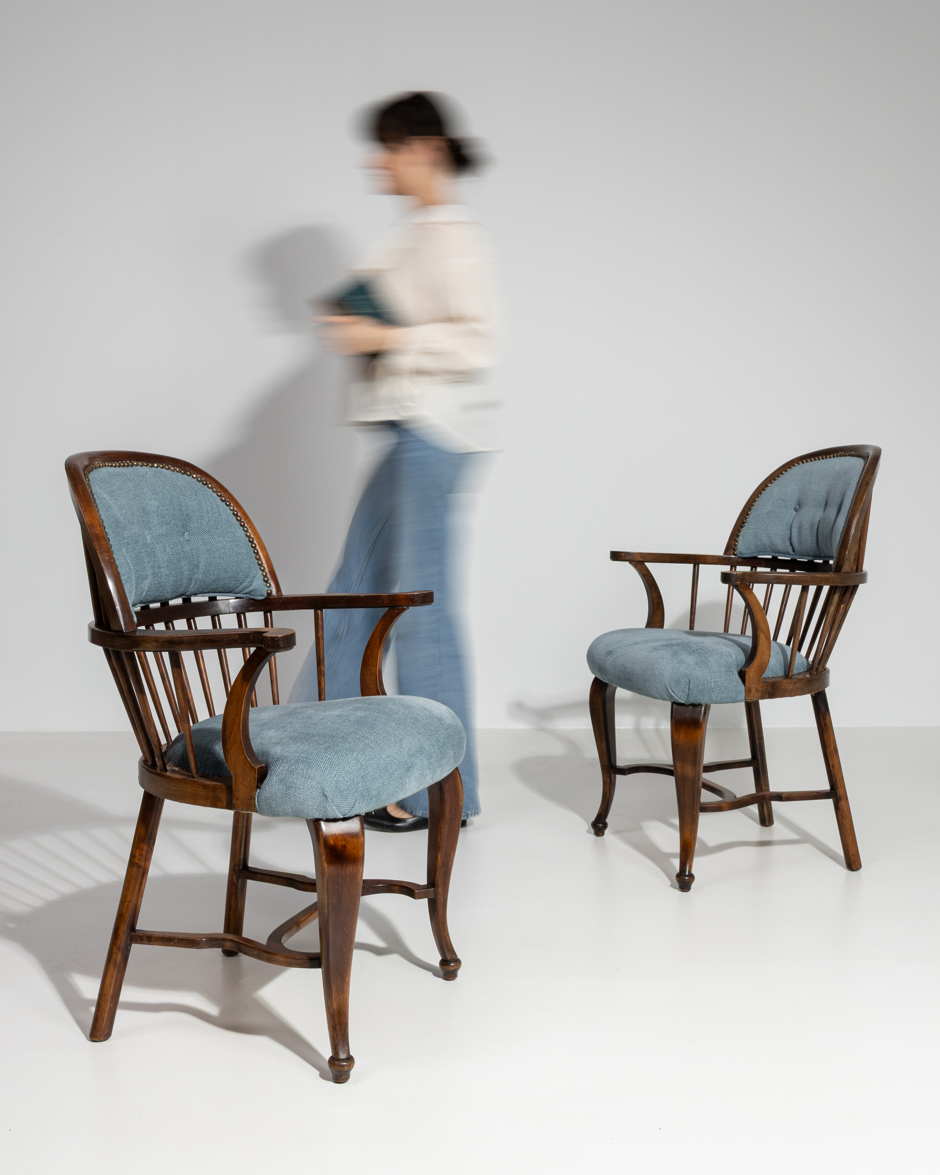More info About Spindle-Back Oak Armchair with Bouclé Cushions![]()