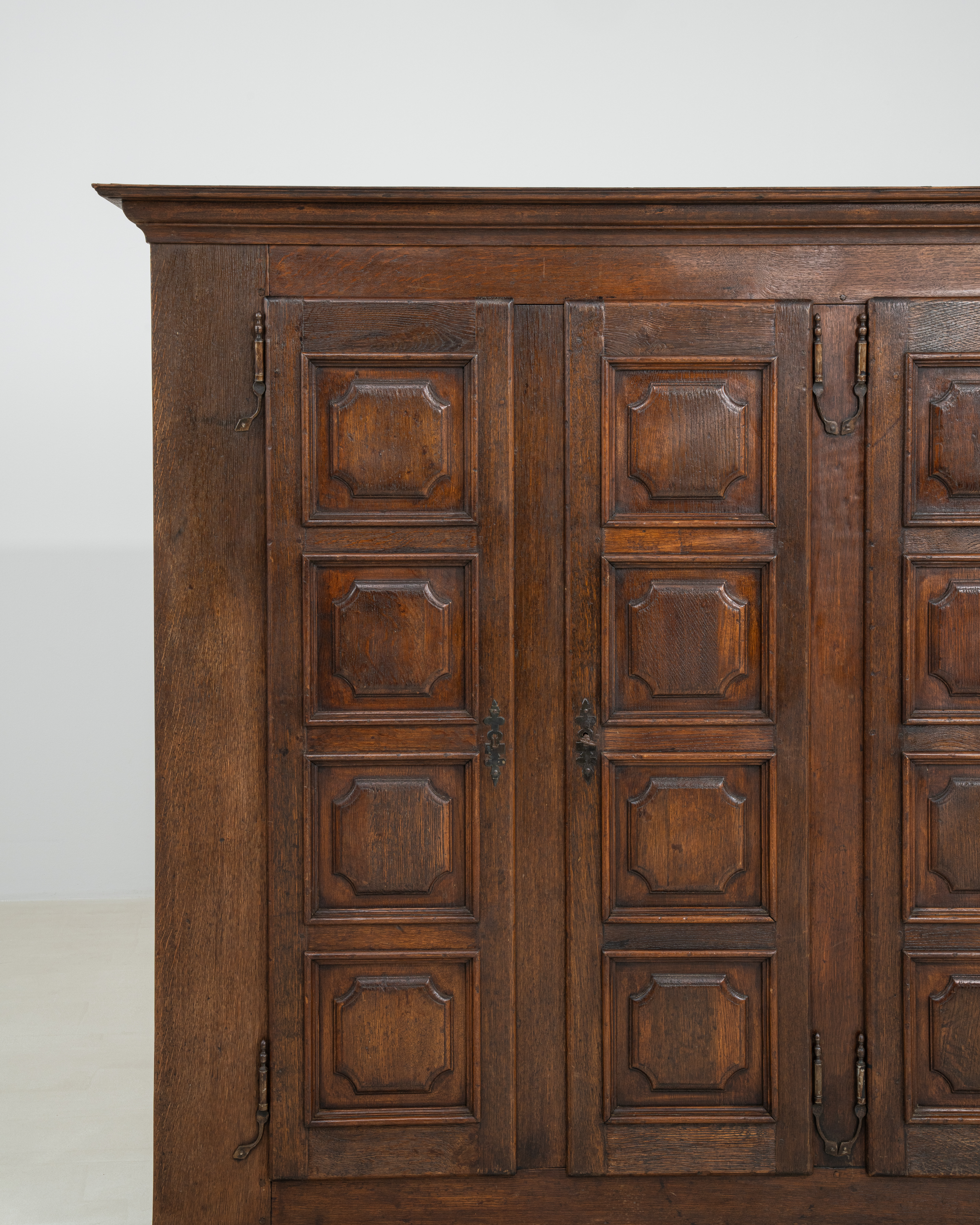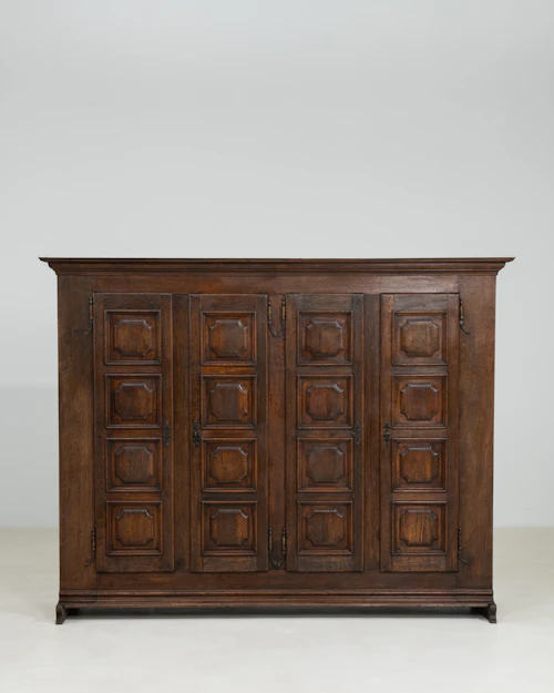 Oak 4-door Buffet With Carved Panel Doors And Iron Hardware