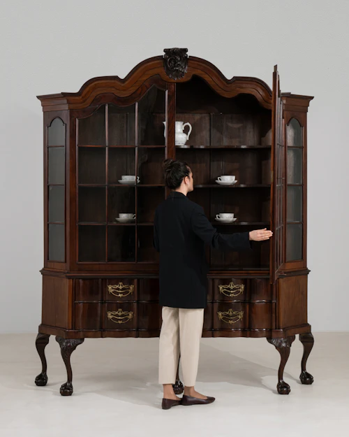Louis XV Style Oak Vitrine With Mesh Screens