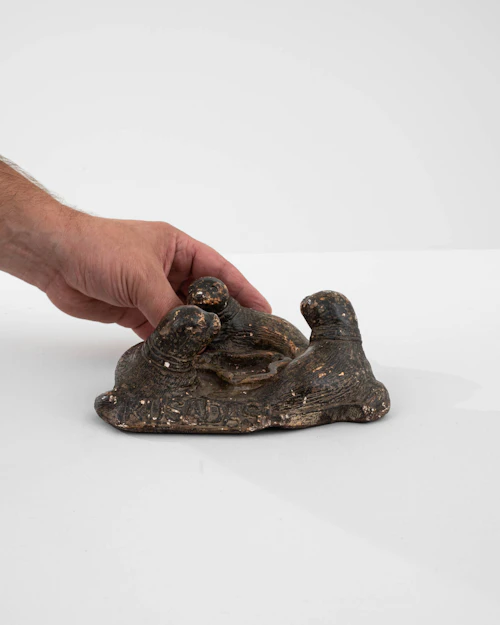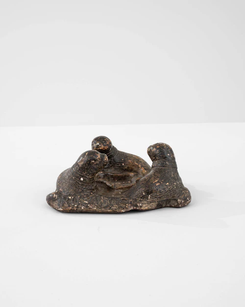 Copper Desk Accessory With Dog Figurine And Inkwell Holder