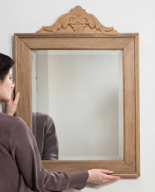 More info About Faux Bamboo Crescent Mirror With Rattan Inlay![]()
