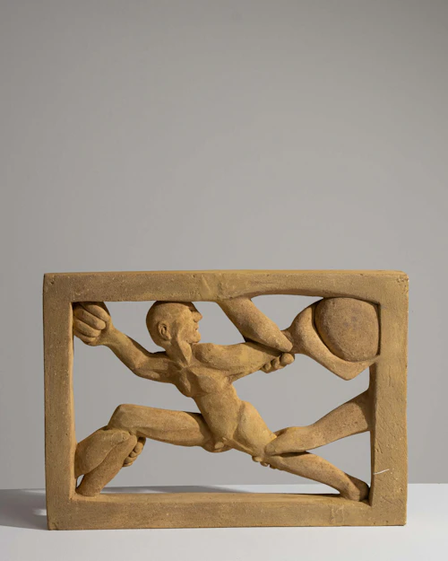 Scene Relief Jug With Antler-Form Handle Signed J.Peckers