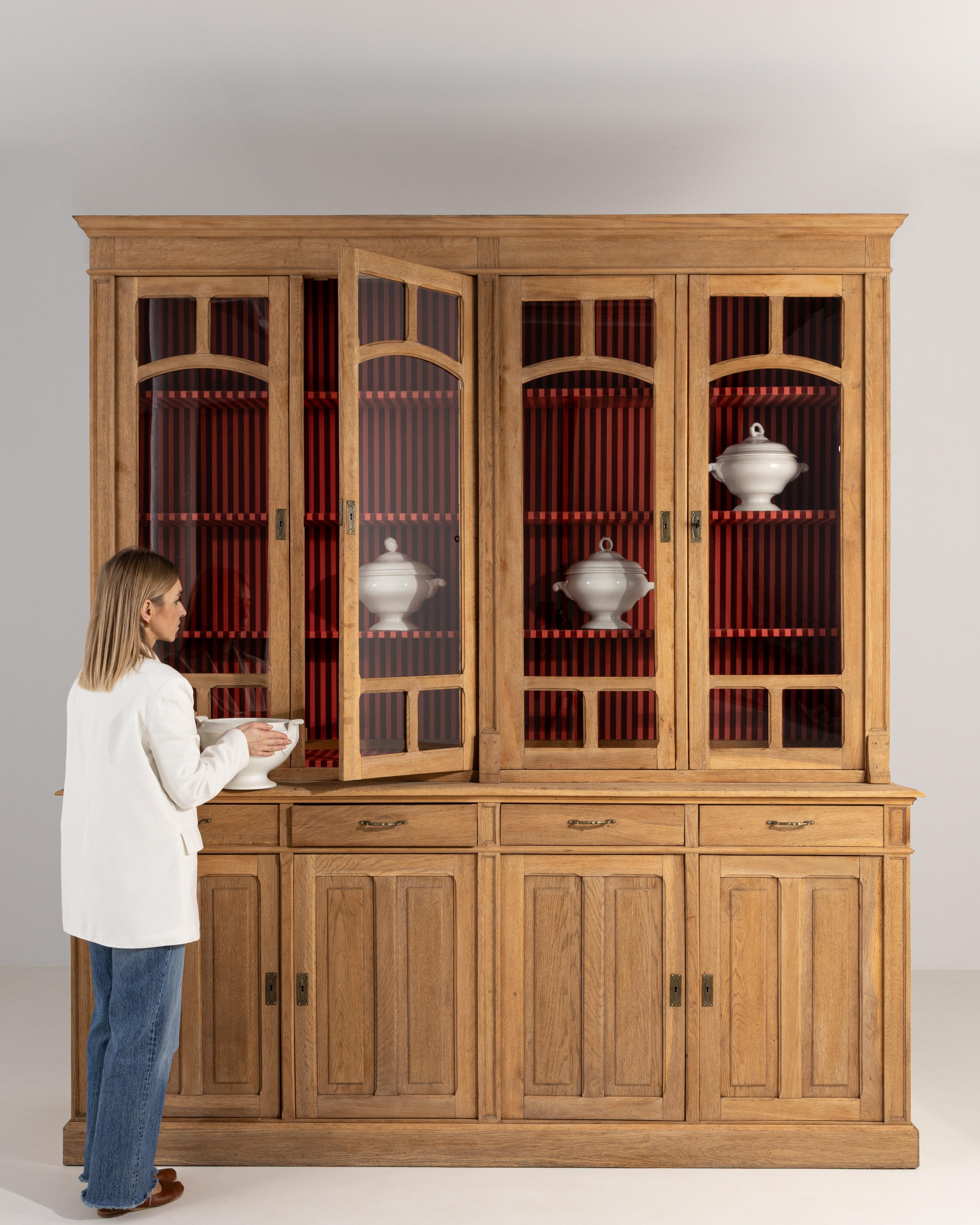 More info About Oak Vitrine With Red Striped Interior Lining