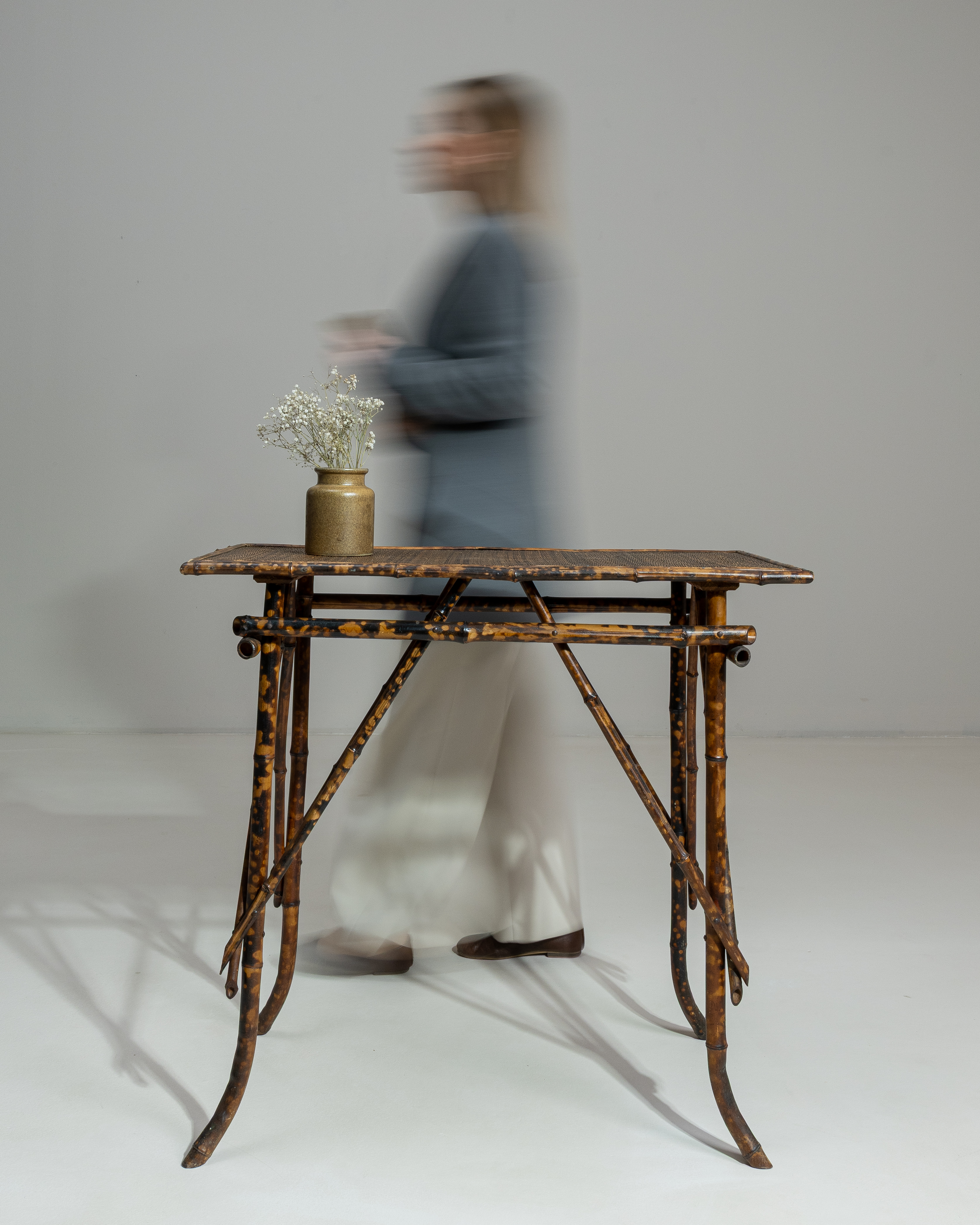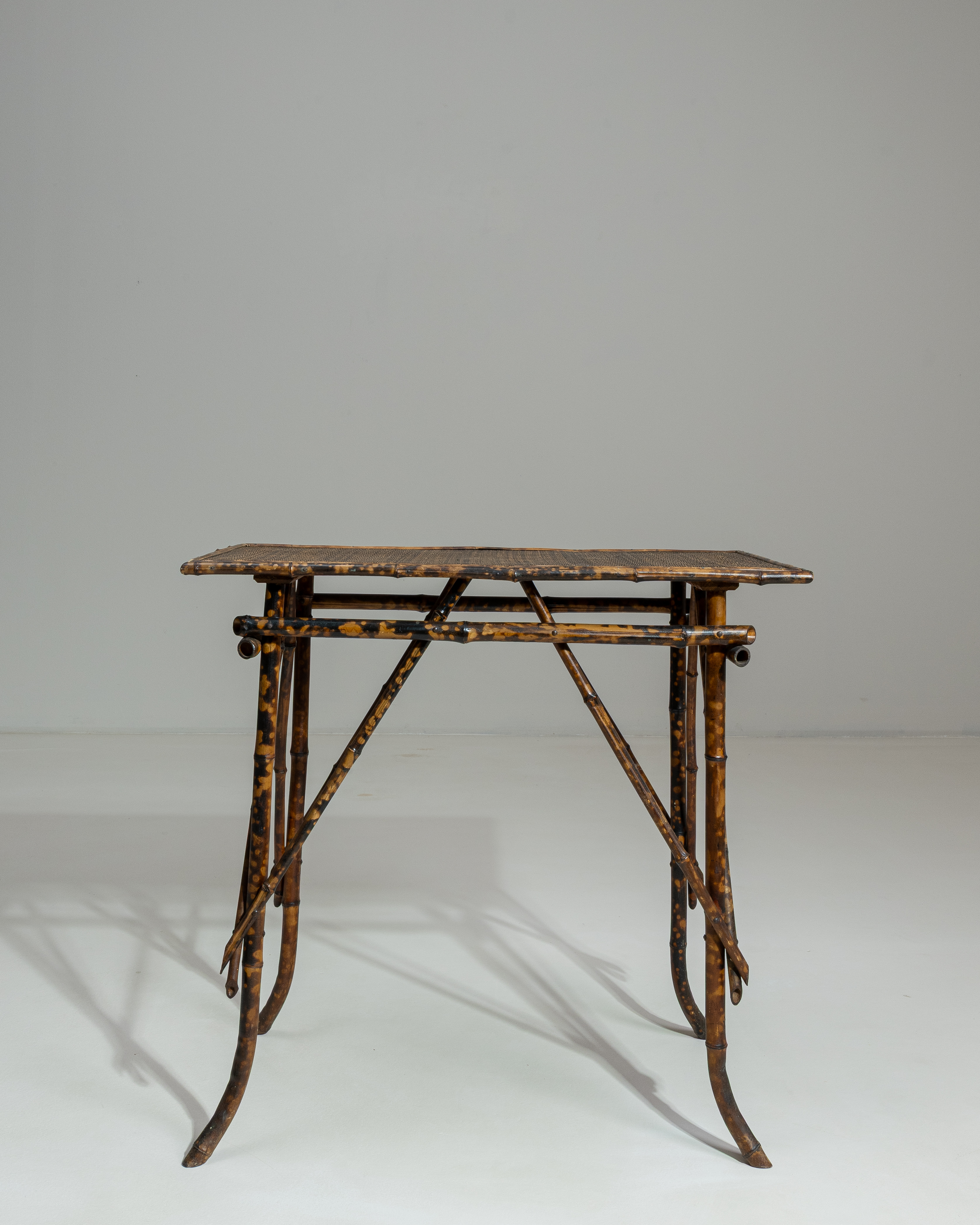 Chippendale Table With Rattan Details And Glass Top
