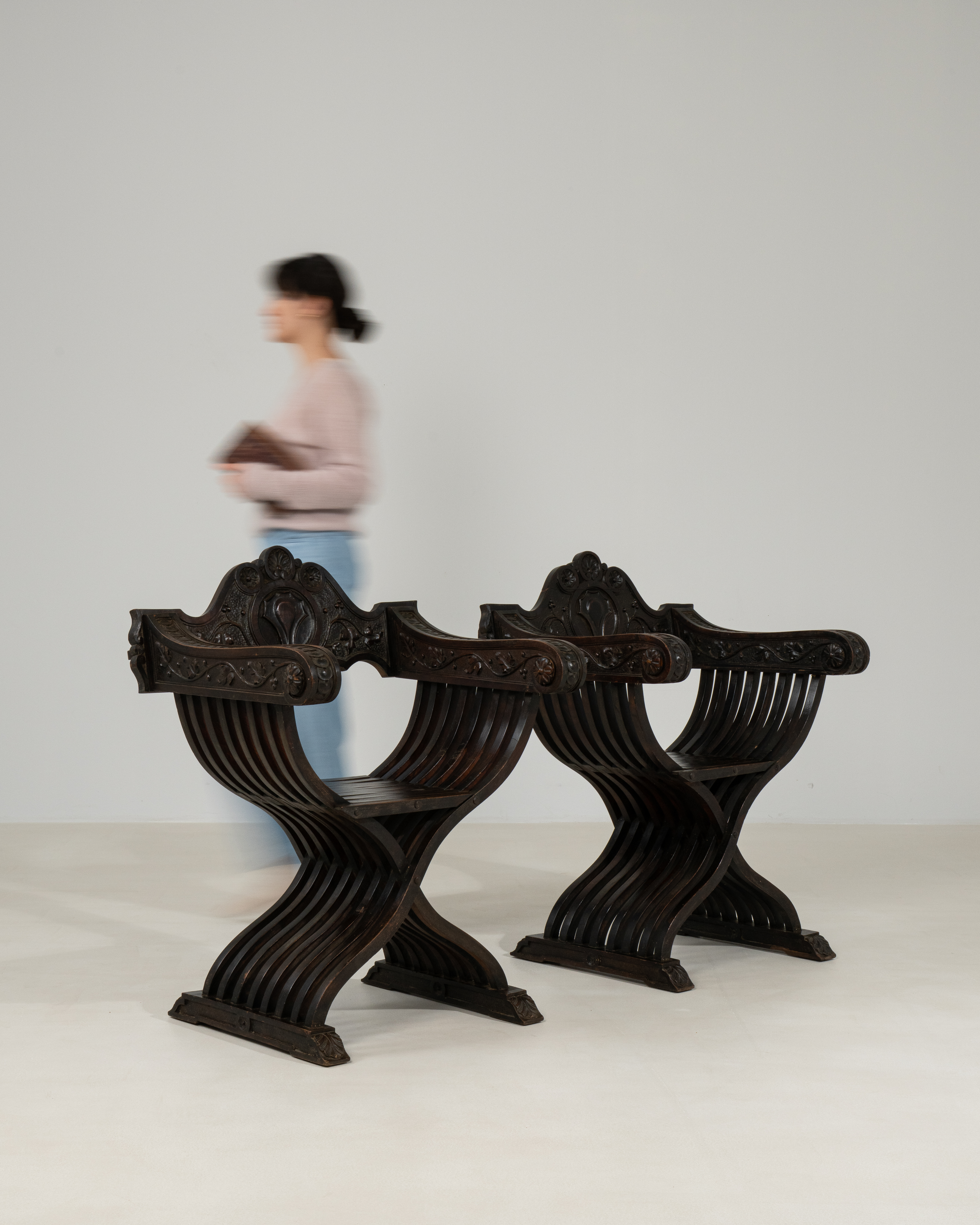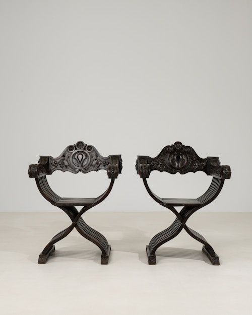 Pair Of Carved Folding Scissor Savonarola Chairs