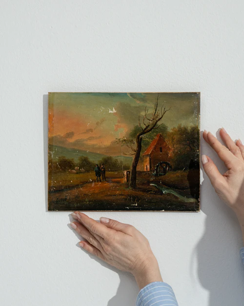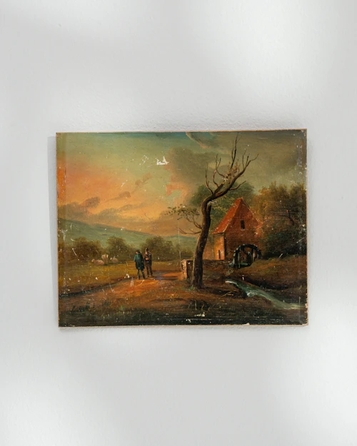 More info About Oil On Panel Rural Landscape With A Cottage![]()