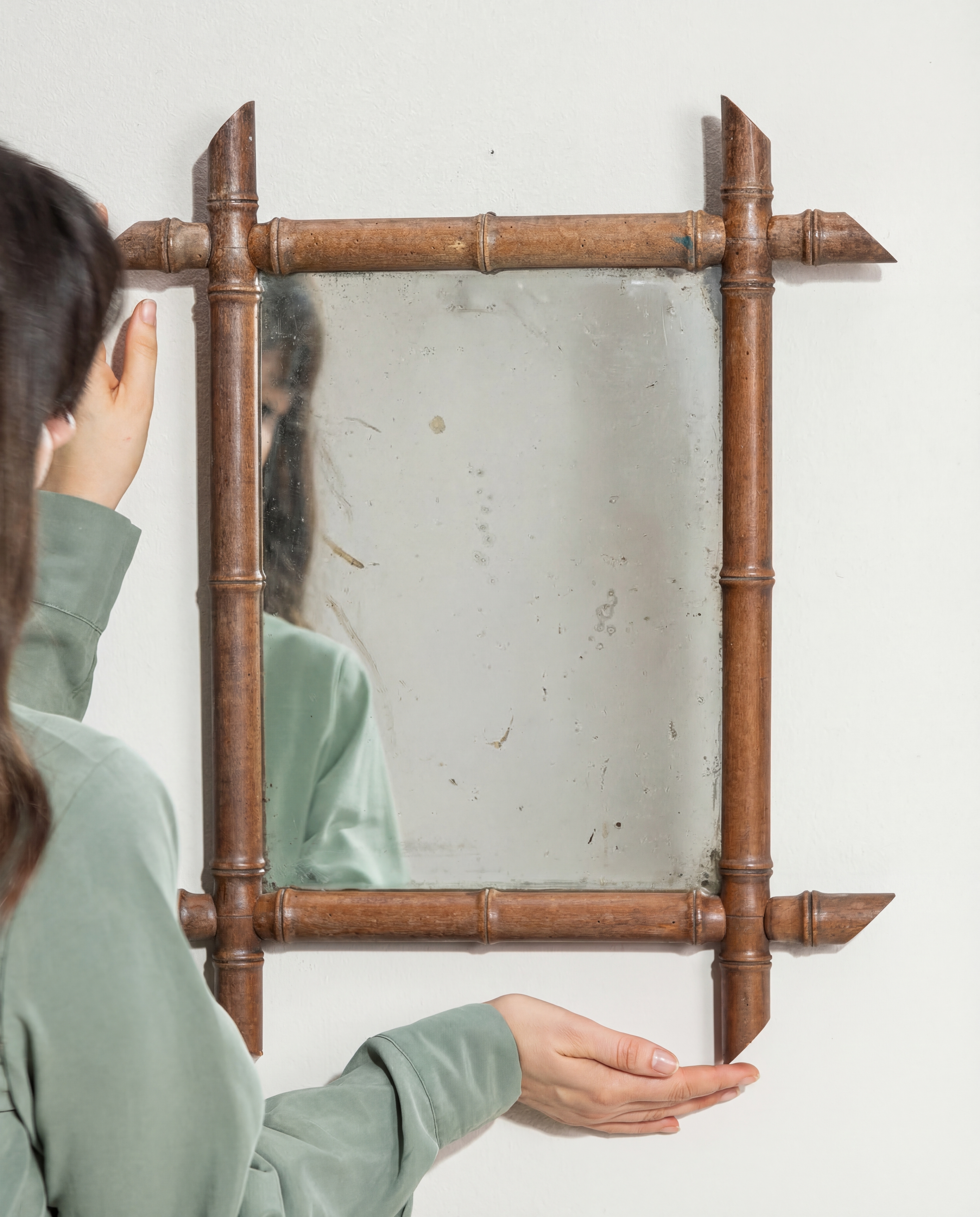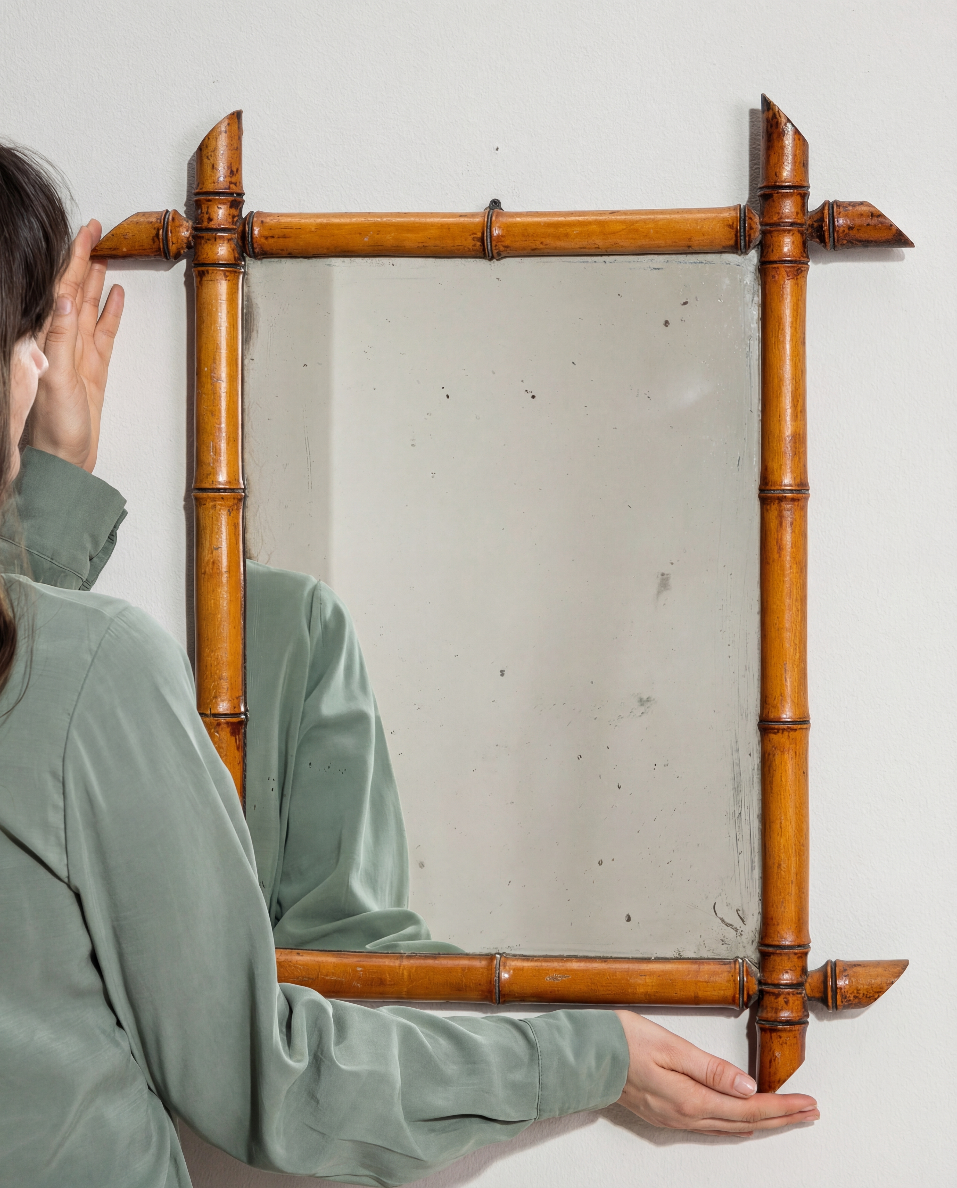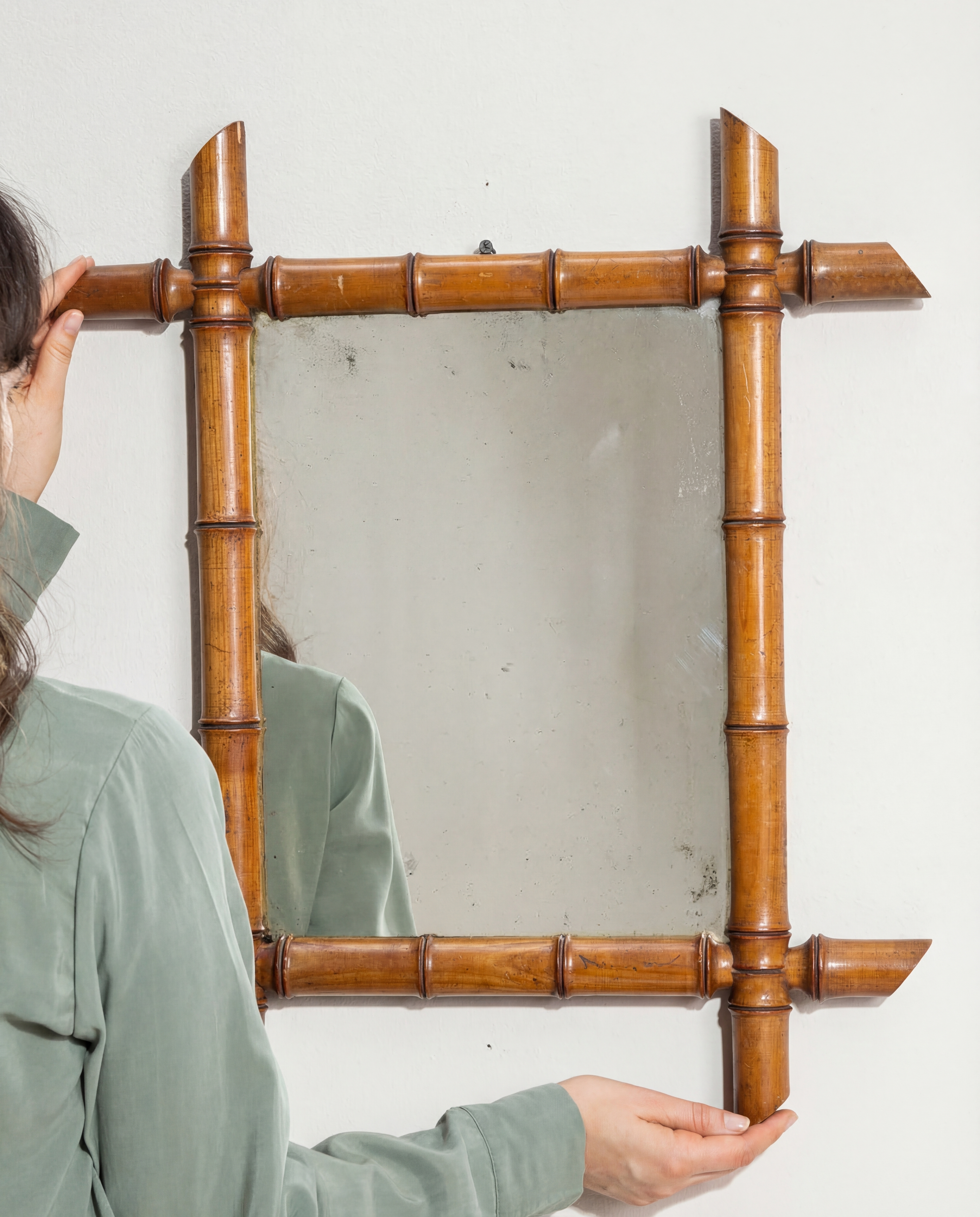 More info About Faux Bamboo Crescent Mirror With Rattan Inlay