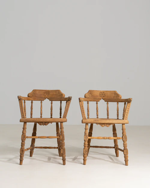 More info About Pair Of Victorian Oak Smokers Bow Fireside Armchairs![]()