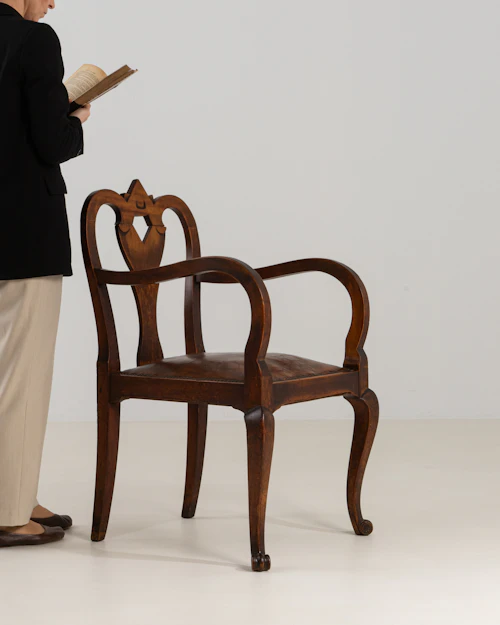 Queen Anne Revival Armchair In Original Patina And Leather Seat