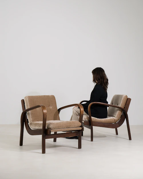More info About Pair Of Upholstered Armchairs by Antonin Kropáček![]()