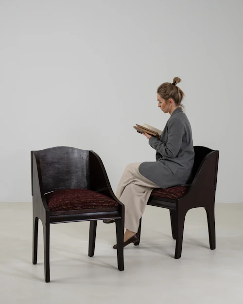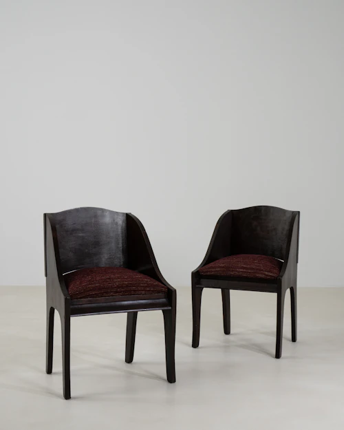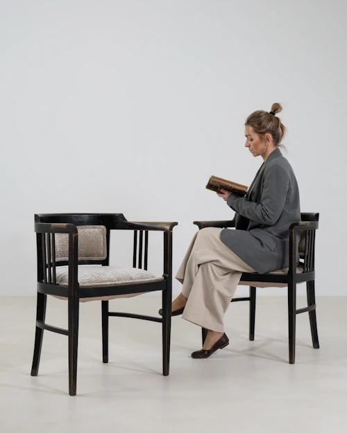 Pair Of Art Nouveau Black Patinated Wooden Upholstered Armchairs