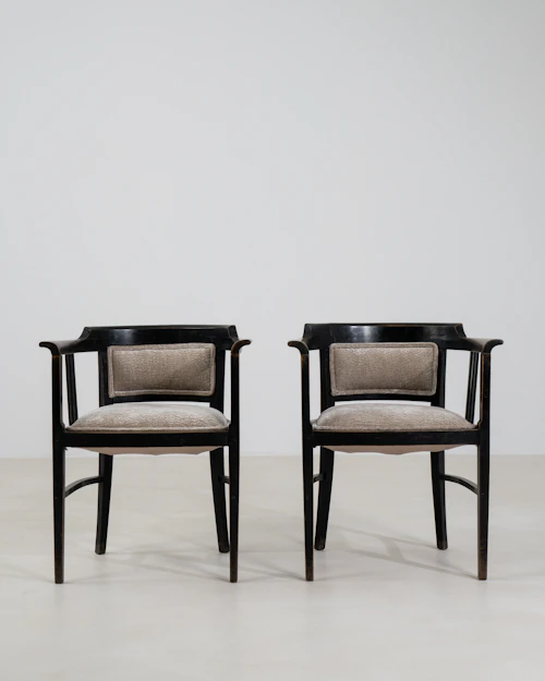 More info About Pair Of Art Nouveau Black Patinated Wooden Upholstered Armchairs![]()