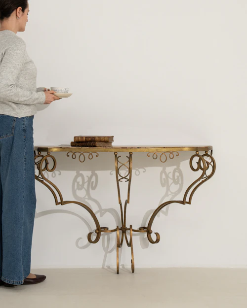More info About Art Deco Wrought Iron Consola Table With Marble Top![]()