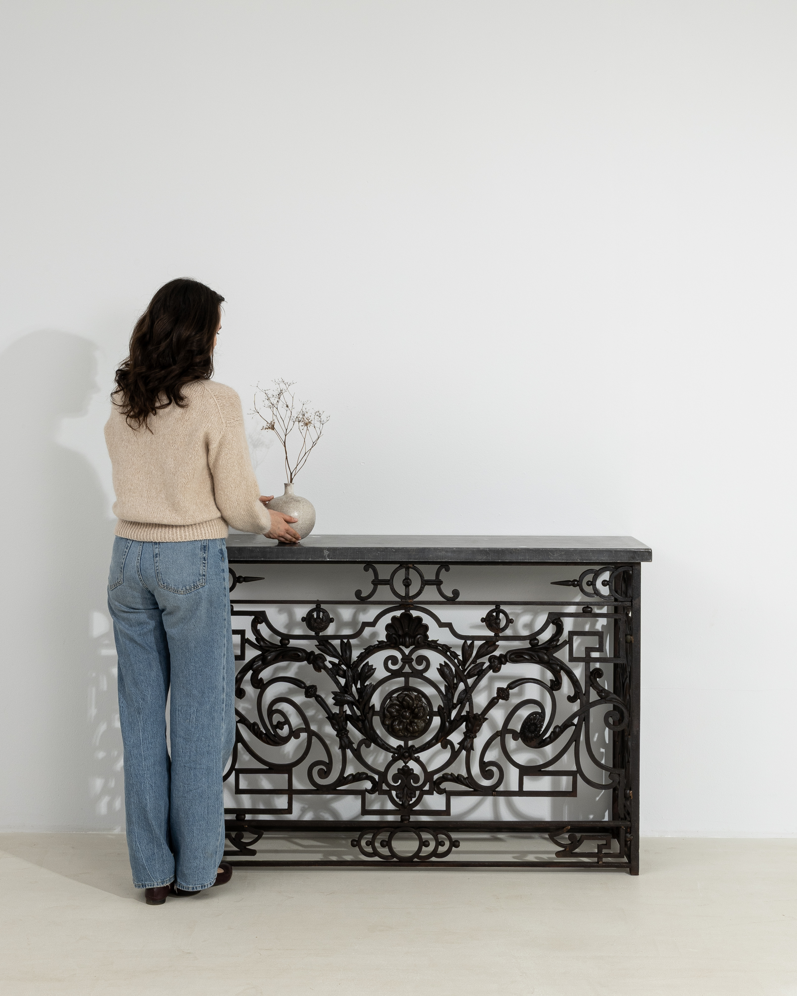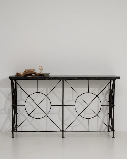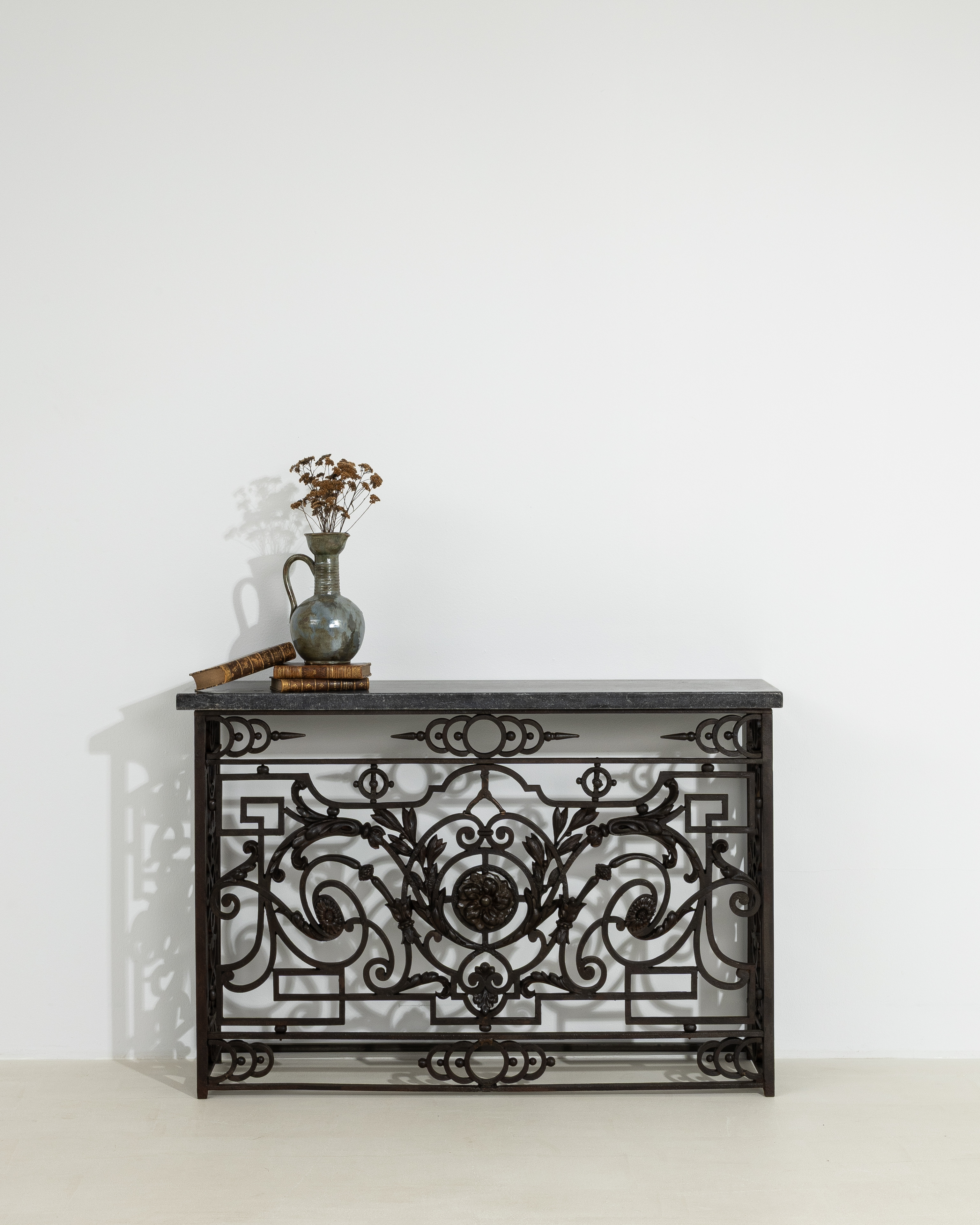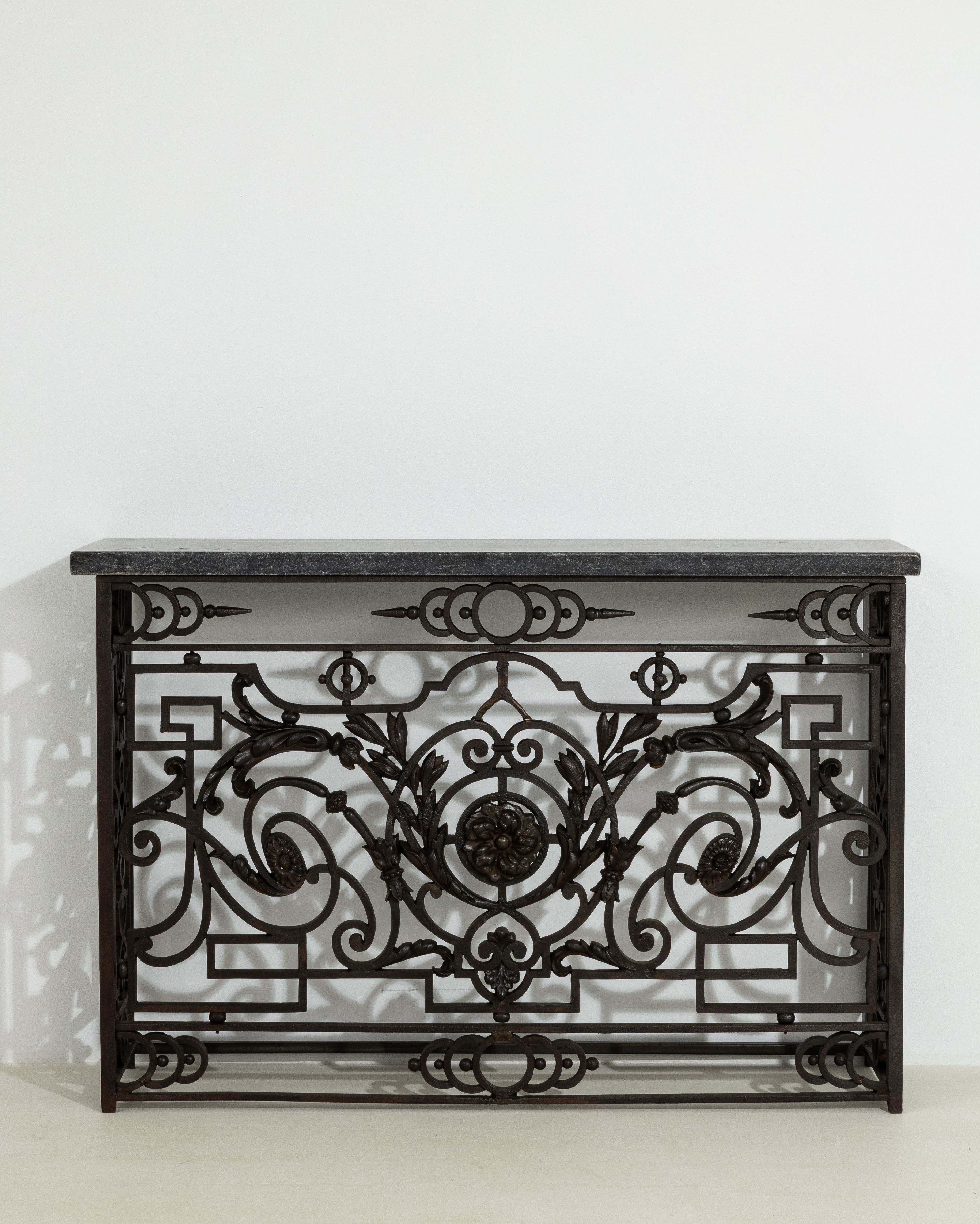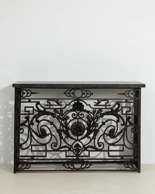 More info About Neoclassical Wrought Iron Console With Belgian Bluestone![]()
