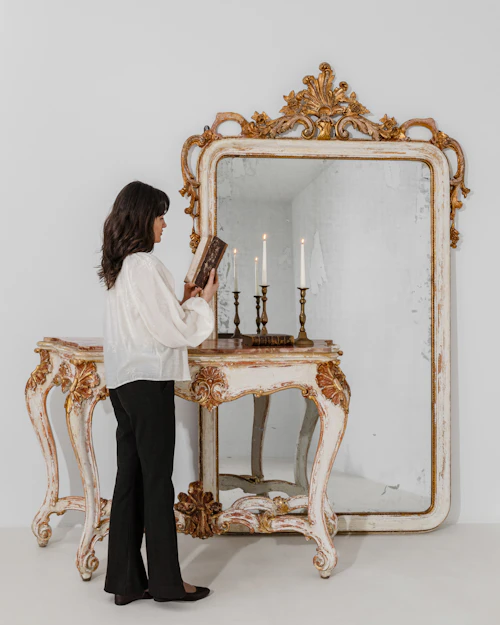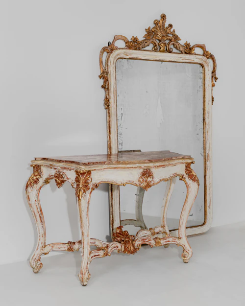 Grand Venetian Neo-Rococo Gilt Console & Mirror