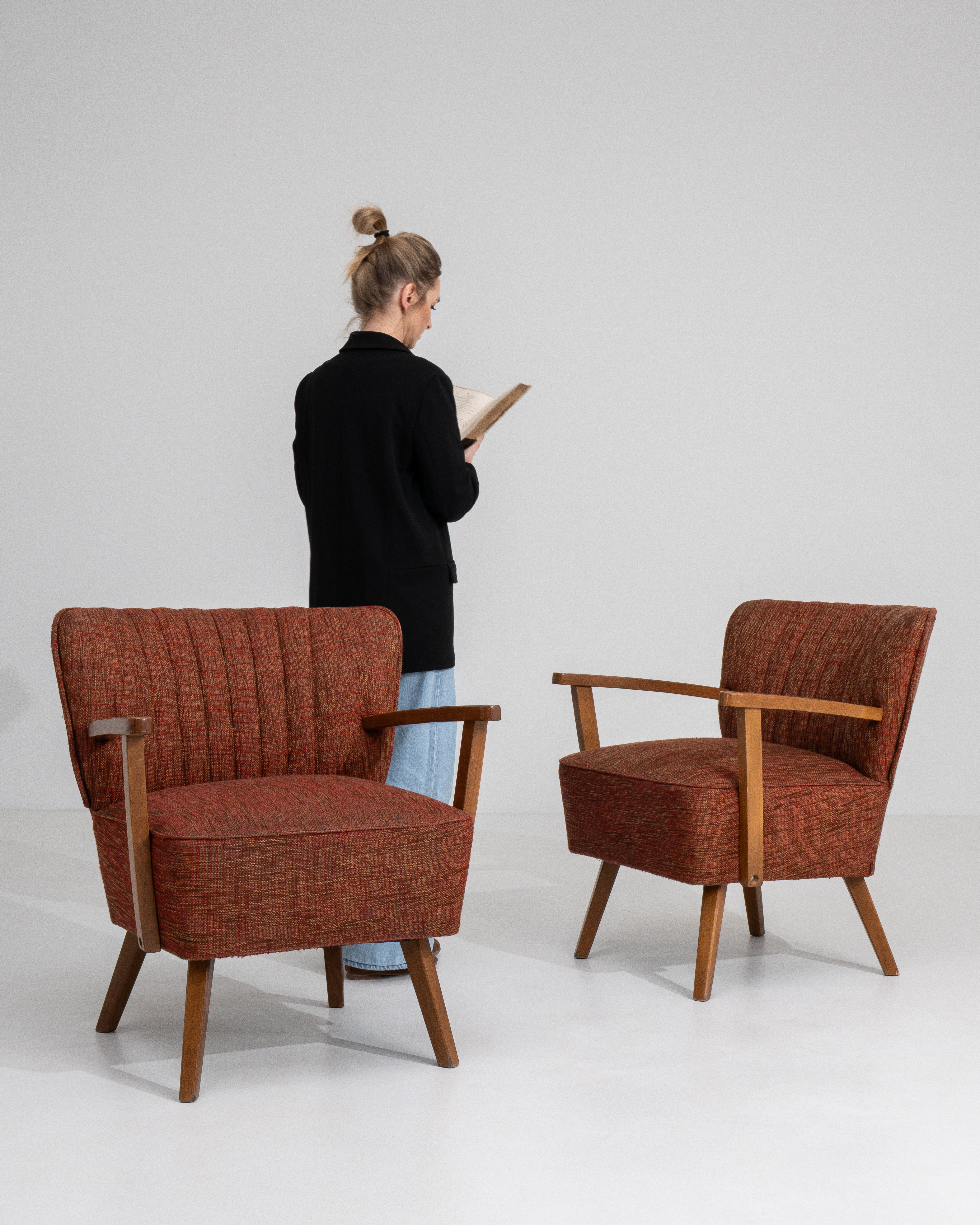 More info About Pair Of Mid Century Modern Upholstered Armchairs