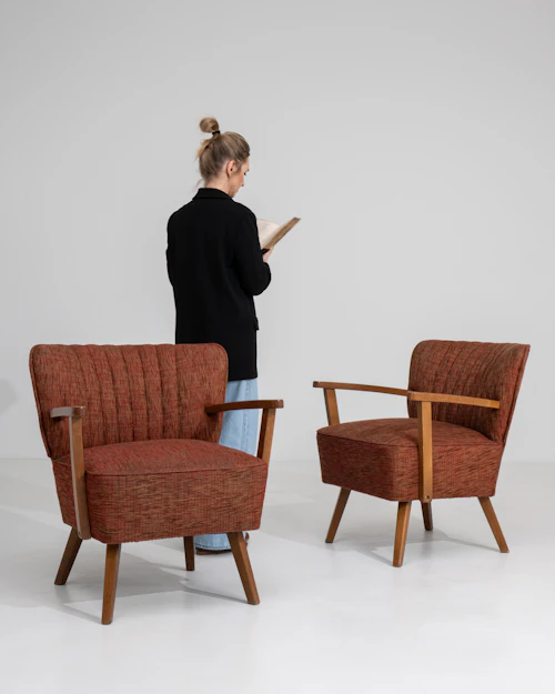 Pair Of Mid Century Modern Upholstered Armchairs
