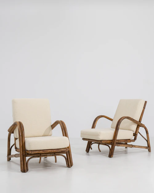 More info About Pair Of Faux Bamboo Reclining Armchairs With Bouclé Upholstery![]()