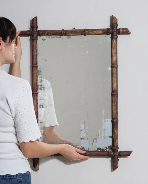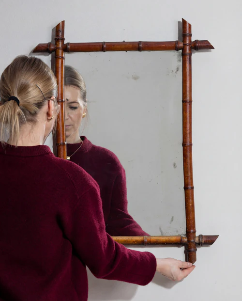 More info About Faux Bamboo Crescent Mirror With Rattan Inlay![]()
