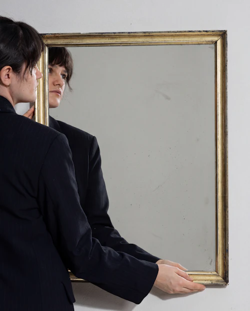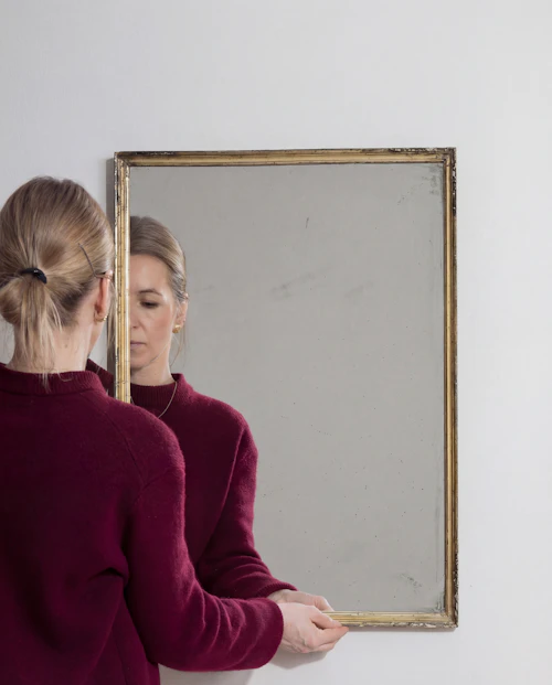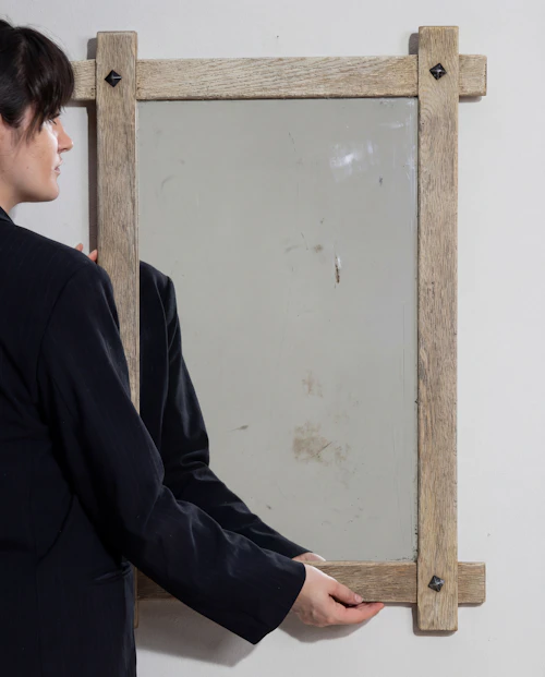 Geometric Stepped-Frame Wooden Wall Mirror