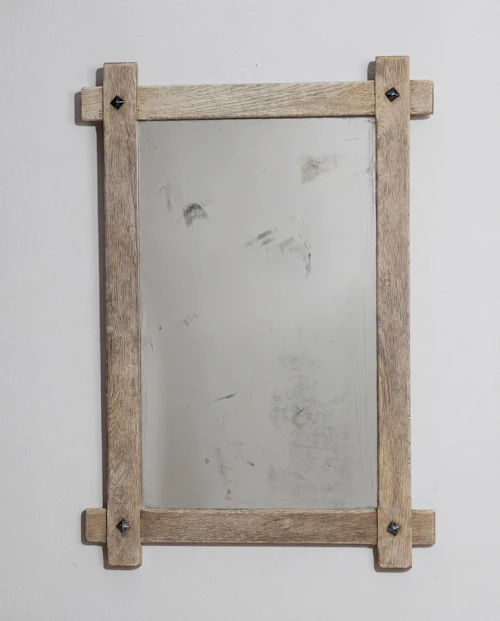 Wood Patinated Mirror With Wrought Iron Details