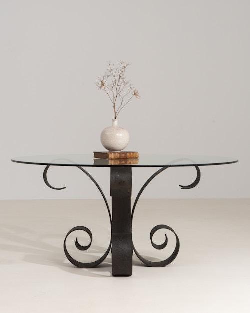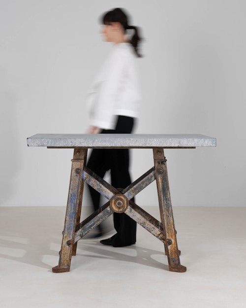Industrial Cast Iron Table with Belgian Blue Stone Top