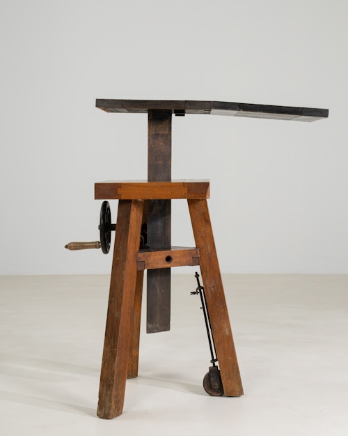 Rare Adjustable Sculpture's Table With Hand Crank